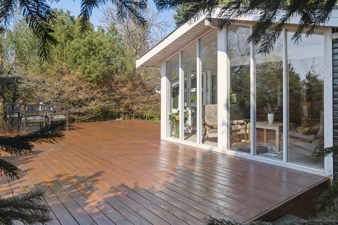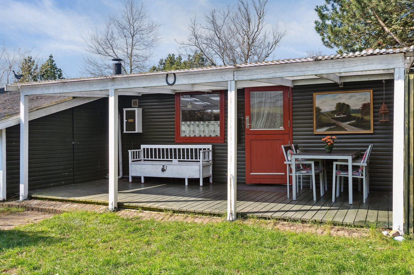 The holiday home is situated on a 400 m² garden site. Situated 200 m from the sea. Nearest shop is 1800 m away. A terrace belong to the holiday home. Furthermore the house has a covered terrace. You find a tool shed. Barbecue at your disposal.