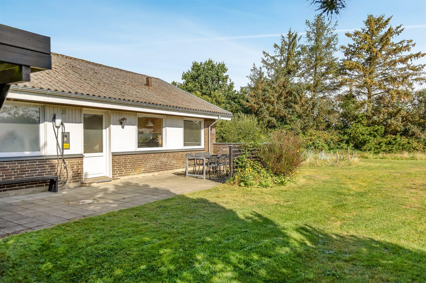 The holiday home is situated on a 1770 m² natural site. Situated 1700 m from the sea. Situated 1000 m from the Wadden Sea. Nearest shop is 400 m away. You will find a golf course in a distance of 700 m. A terrace belong to the holiday home. Furthermore the house has a covered terrace. Swing. Trampoline. Barbecue at your disposal. Plug for charging electric car is available. Charging socket type 2. Parking place by the holiday home.