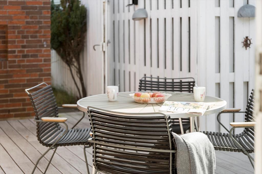 Zum Ferienhaus gehören ein 1011 m² großes Grundstück, eine große, nach Süden ausgerichtet und teilweise überdachten Terrasse, die einen fantastischen Blick über den Kalundborg Fjord bietet und einen guten Morgen Innenhof-Terrasse. Zum Haus gehören auch Gartenmöbel, Sonnenschirm und Grill.