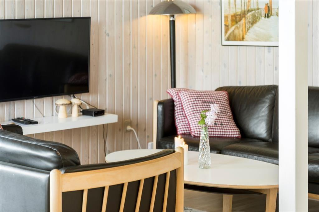 Die offene Küche liegt in Verbindung mit dem Wohnzimmer, aus dem das bietet einen einzigartigen Blick auf den Fjord, ist ausgestattet mit Glaskeramikherd, Dunstabzugshaube und Kühlschrank mit Gefrierfach. Flur mit Geschirrspüler, Mikrowelle und Waschmaschine. Hell und modern eingerichtes Wohnzimmer mit großen Fensterpartie, die nicht nur gutes Licht ins Haus bringt, sondern auch die Möglichkeit gibt, die tolle Aussicht zu genießen. Von Wohnzimmer ist Ausgang zur eine teilweise überdachte Terrasse, gutem Essplatz, Gemütliche Sitzecke mit sofas, Sesseln, Holzofen und Flachbildschirm. Badezimmer mit Duschnische, Badewanne und Fußbodenheizung. Gästetoilette mit Waschbecken. 3 Schlafzimmer, zwei mit Doppelbetten und eins mit Großen Etagenbett (90x200). Heizung des Hauses erfolgt durch Wärmepumpe, Holzofen und elektrische Heizung.