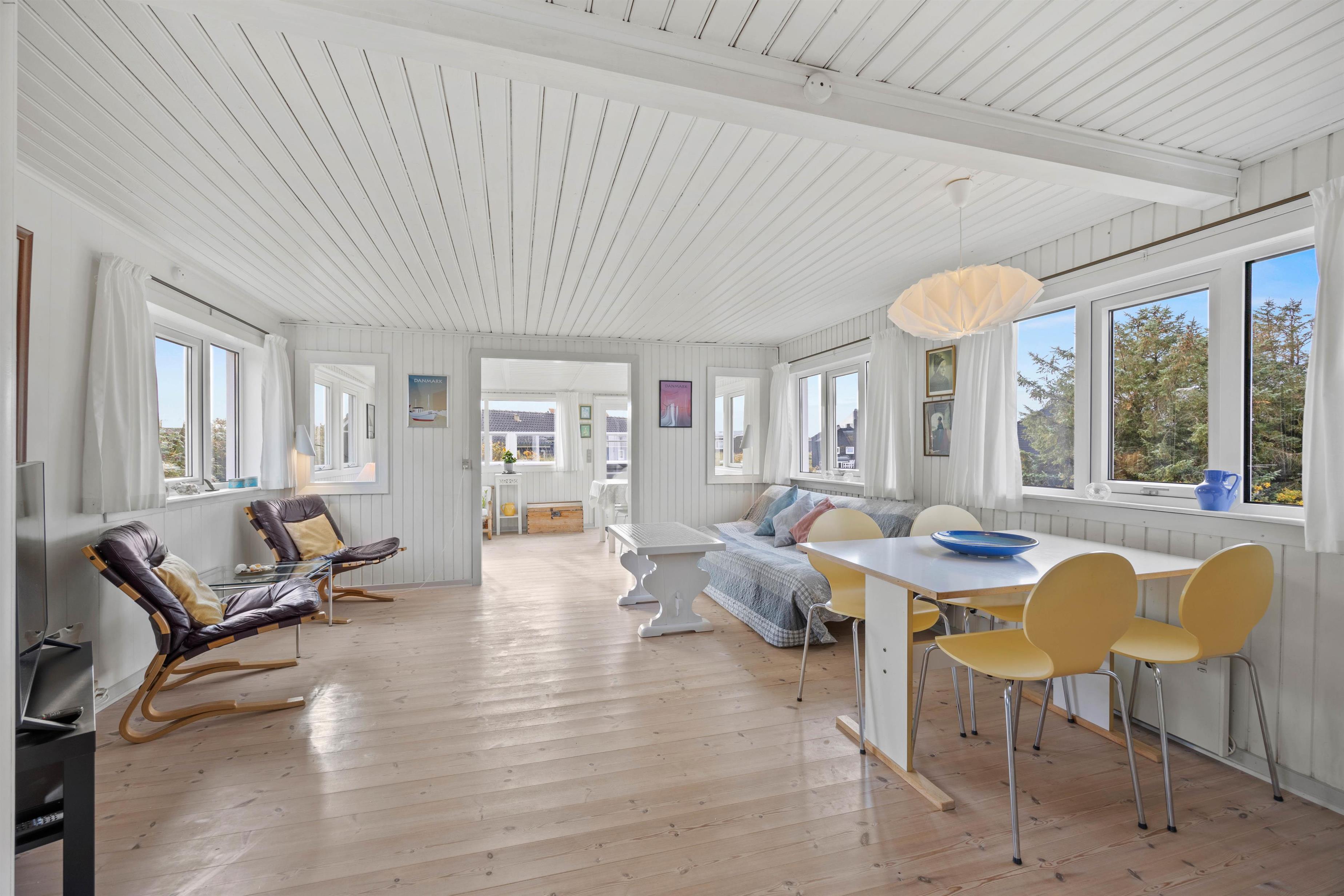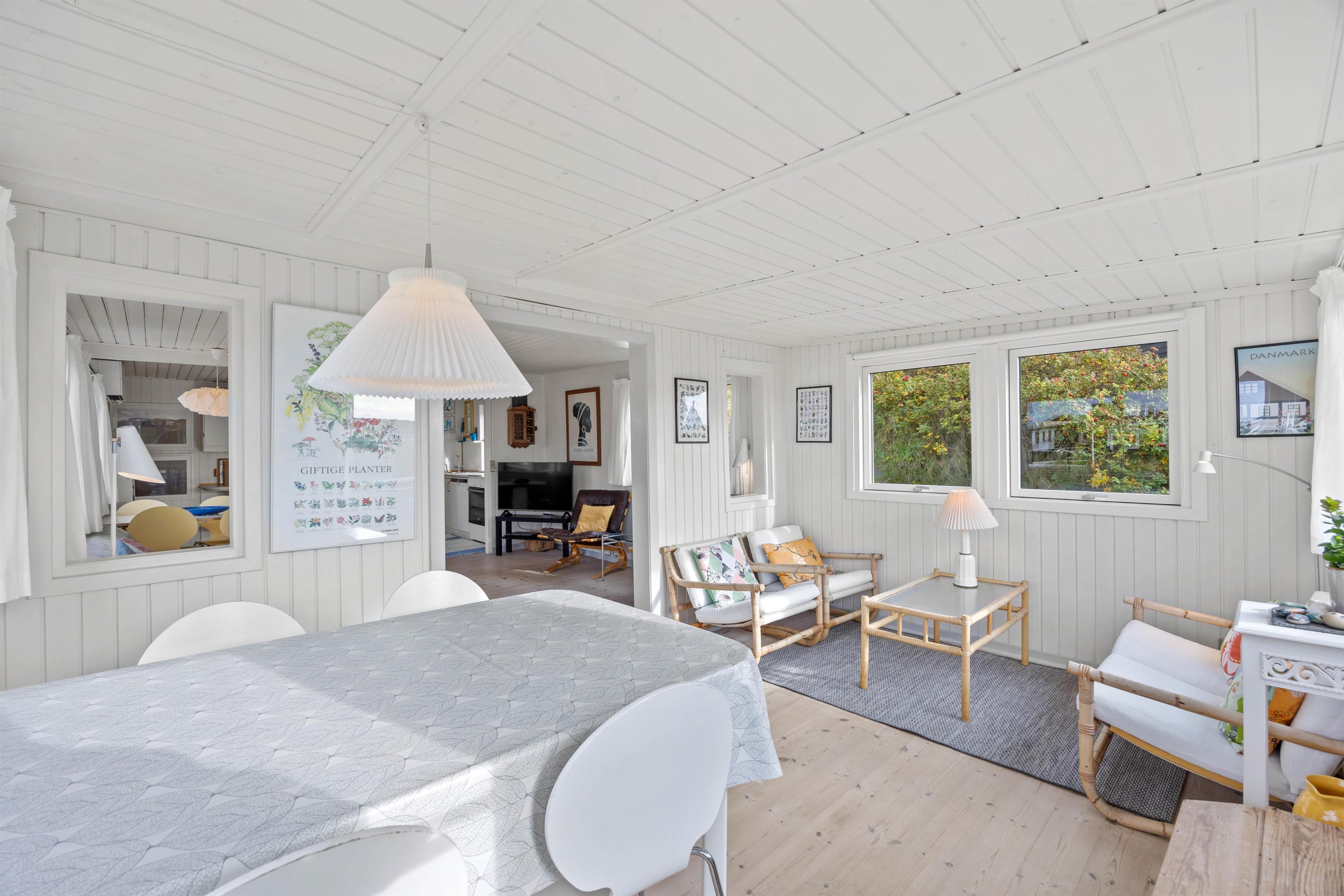 As soon as you step through the door of Hympelvej 23, you're welcomed by a comfortable holiday atmosphere with natural light, light wooden floors, and white-painted wood-clad walls and ceilings. The open-plan kitchen features everything you need to prepare delicious home-cooked meals, including an induction hob and dishwasher.