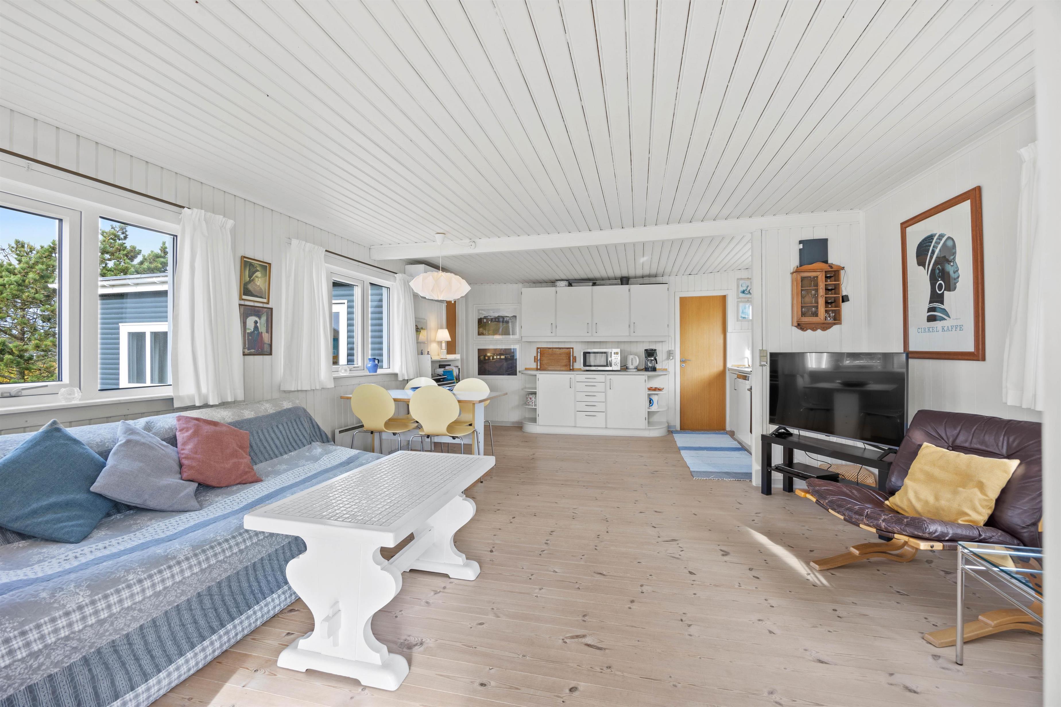 The well-equipped living room is perfect for socialising and offers lovely views over the terrace and West Jutland dunes. Entertainment includes a television with DVD player, perfect for cosy movie nights with homemade popcorn.