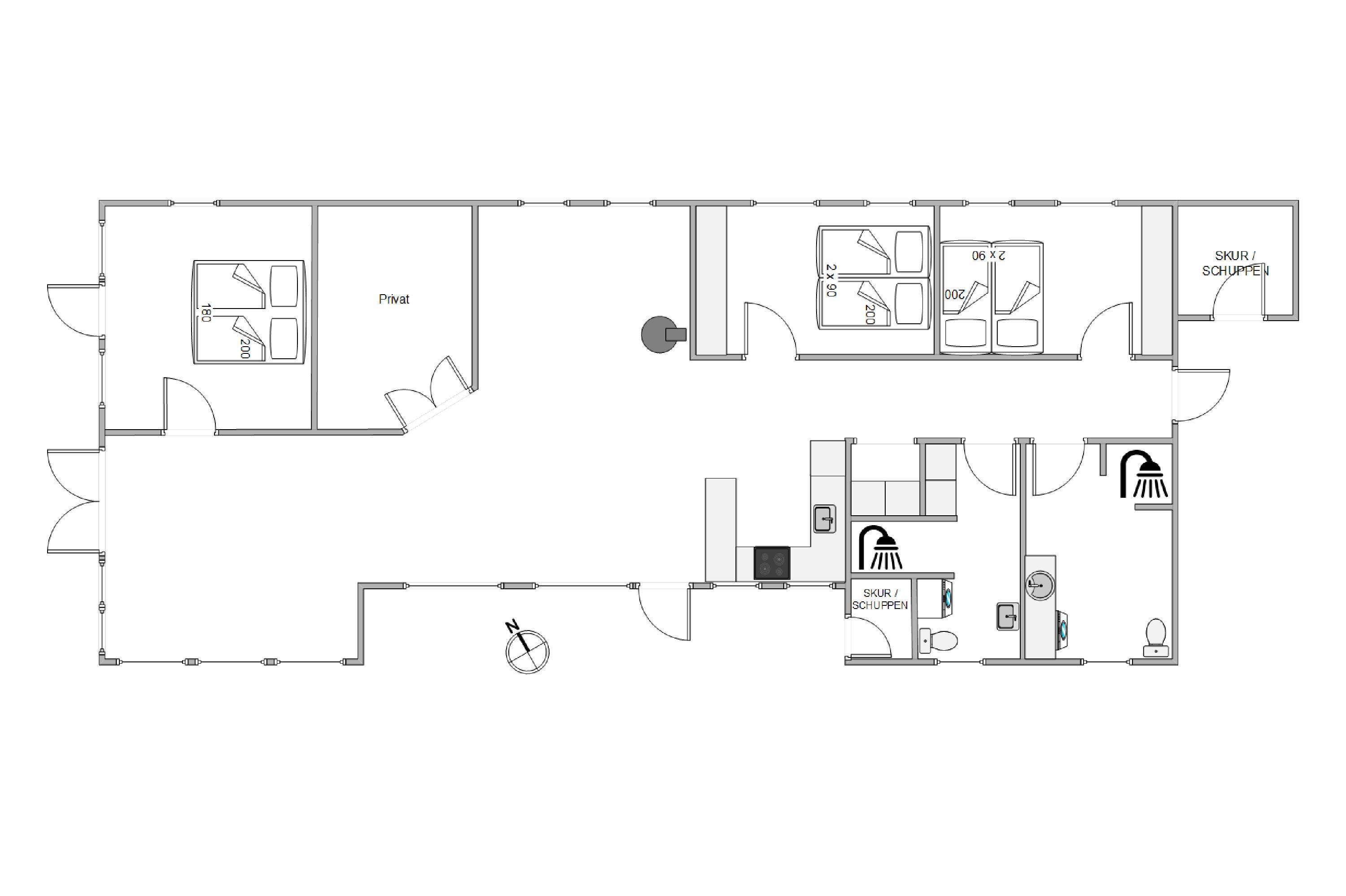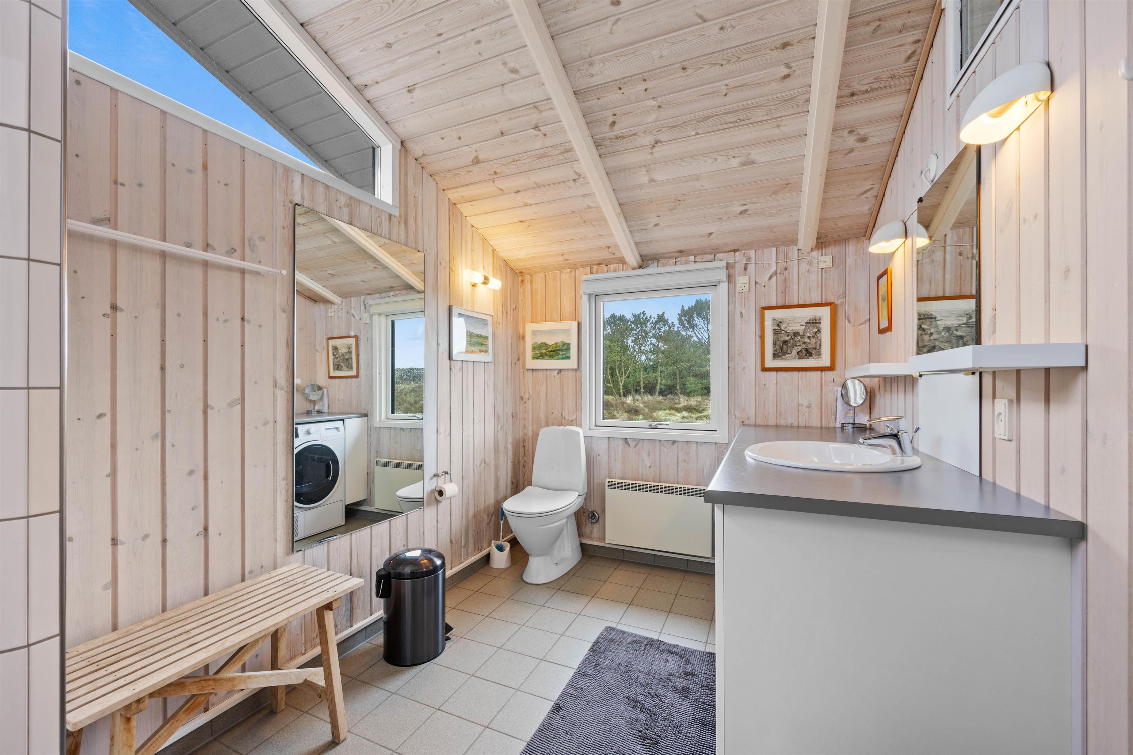 The well-equipped kitchen has everything needed for relaxed cooking, including an induction hob and dishwasher. 3 bedrooms, all with double beds, ensure a peaceful night's sleep. Conveniently, the holiday home has 2 bathrooms, both featuring underfloor heating.