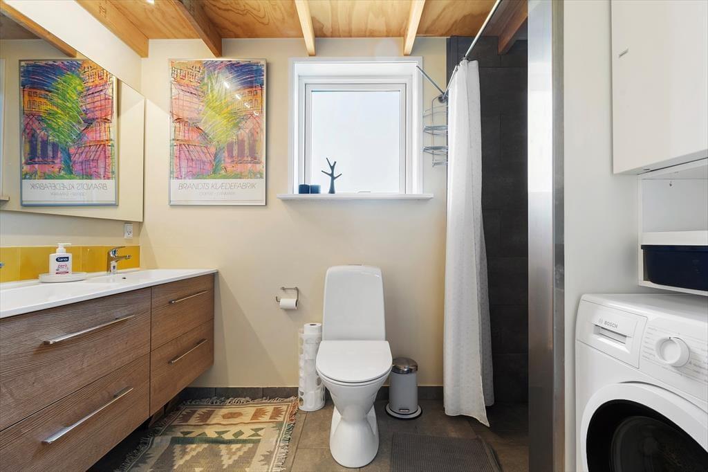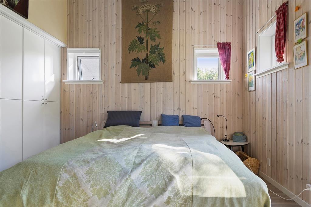 Sommerhuset har to gode soveværelser, som I kan fordele jer på efter behov. Det ene værelse har en dobbeltseng og god skabsplads, mens det andet værelse er indrettet på 1. sal med en dobbeltseng sovesofa. Badeværelset er lyst, nyrenoveret og veludstyret med både brusebad og vaskemaskine. Alt i alt skaber huset de perfekte rammer for en afslappende ferie nær nogle af Samsøs bedste strande.