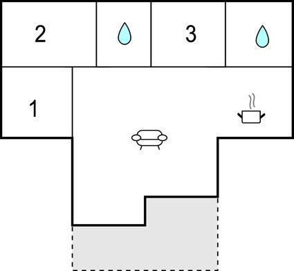 Badezimmer (nr. 1) - WC. Warmes und kaltes Wasser. Dusche