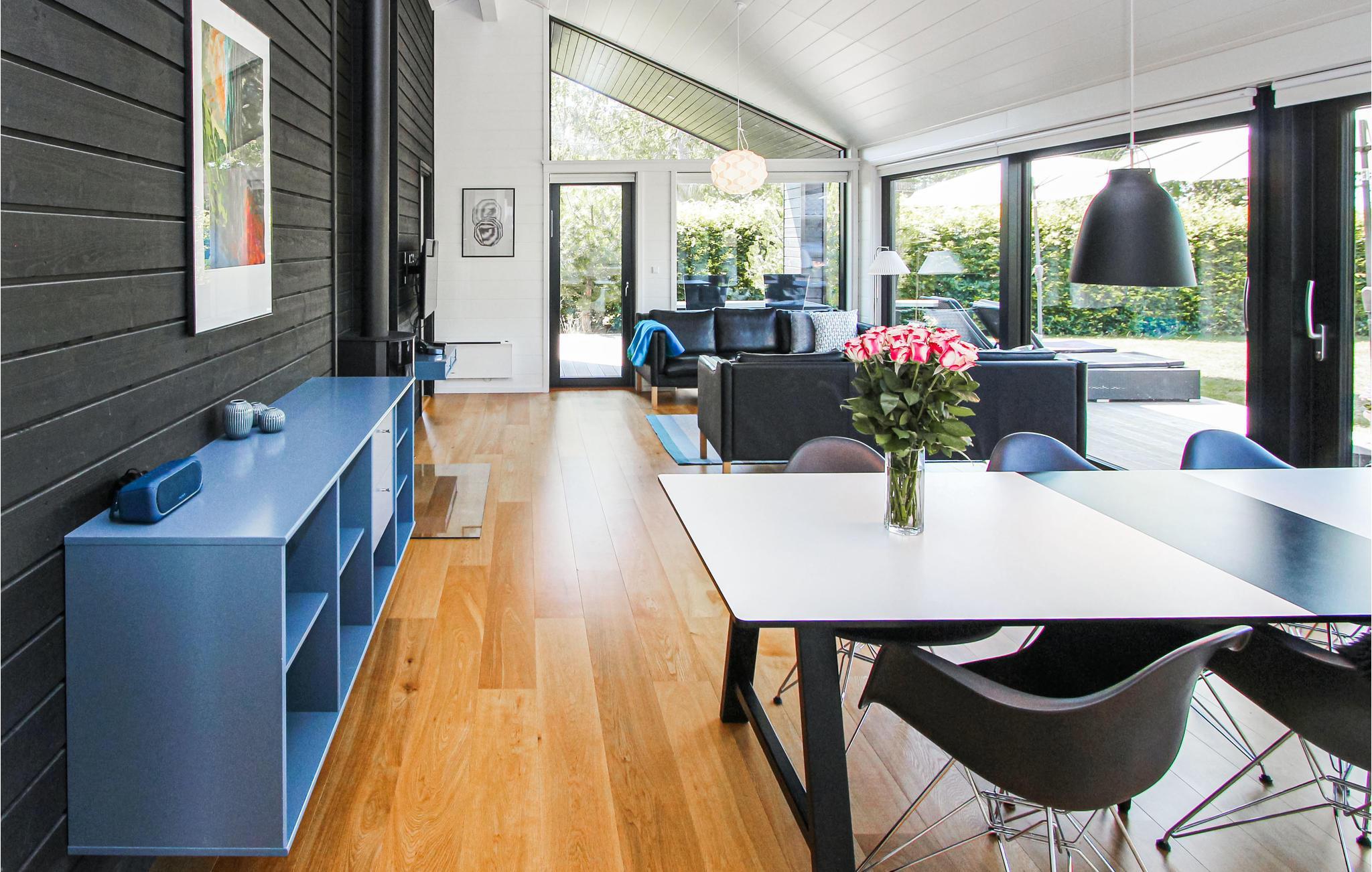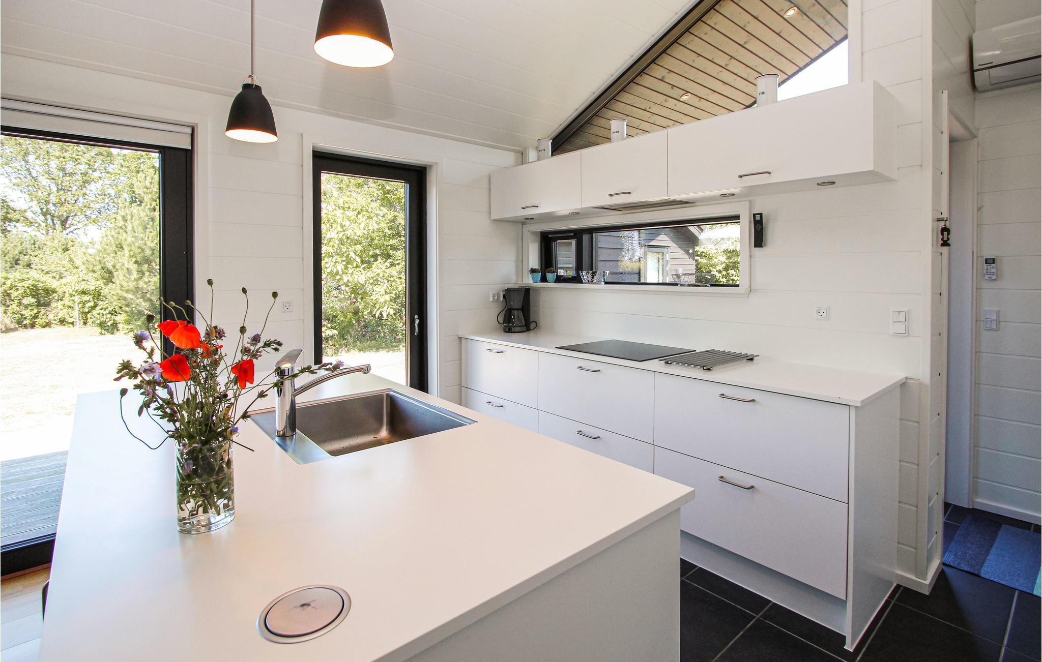 Entspannen Sie mit Ihren Lieben in diesem einladenden Haus, in dem auch an die Bedürfnisse der kleinsten Gäste gedacht ist. Genießen Sie einen fantastischen Blick auf die Sælvig Bucht durch die großflächigen Panoramafenster im Wohnbereich. In der offenen Küche macht das gemeinsame Kochen so richtig Spaß. Später können Sie am gemütlich bullernden Kaminofen zusammen sitzen, der wohlige Wärme verströmt, Geschichten erzählen und schon einmal Pläne für die kommenden Urlaubstage machen.