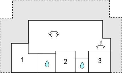 Badezimmer (nr. 1) - WC. Warmes und kaltes Wasser. Dusche