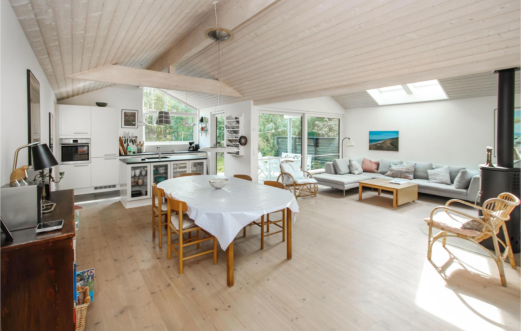 Die hellen, wohnlichen Räume heißen Sie in einem Haus willkommen, dessen Wohnbereich durch geschickt platzierte Fenster einen schönen Tageslichteinfall bietet und den Blick auf das Meer voll zur Geltung bringt. Hier im Herzen des geräumigen Ferienhauses können Sie gemeinsam kochen, lachen und spielen und tolle gemeinsame Erinnerungen schaffen. Freuen Sie sich auf unterhaltsame Abende im Kreise der Familie auf dem großzügigen Wohnzimmersofa, während der Kaminofen seine behagliche Wärme verströmt.