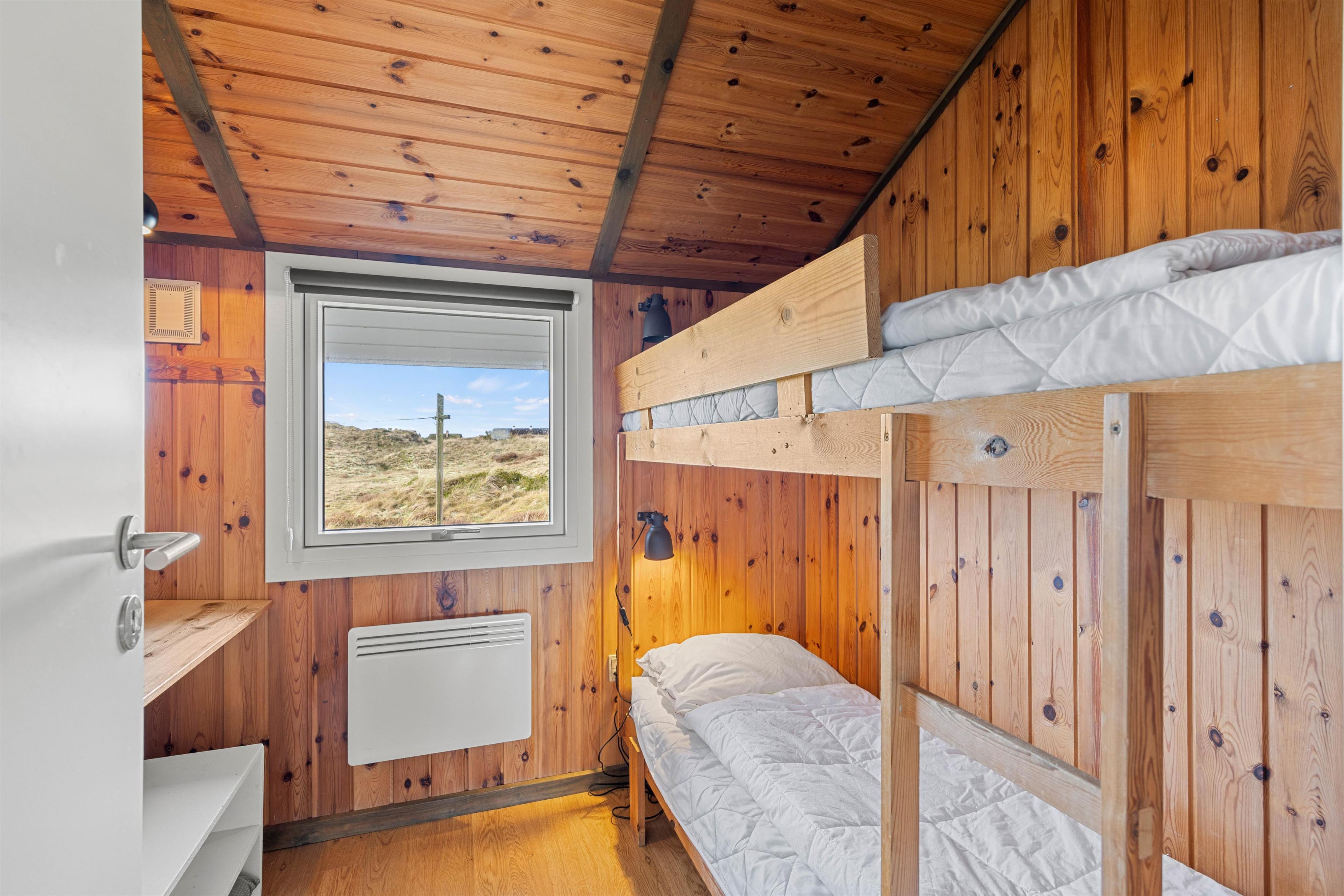 Im Wohnzimmer sorgt der Kaminofen an kühlen Abenden für das gewisse Extra an Ferienstimmung. Dank einer modernen Luft-Luft-Wärmepumpe ist die Temperatur im Ferienhaus immer angenehm und euren Bedürfnissen angepasst. Die Küche ist vollständig ausgestattet und bietet alles, was ihr für die Zubereitung leckerer, hausgemachter Mahlzeiten benötigt – einschließlich Geschirrspüler. Das Badezimmer verfügt über eine Fußbodenheizung, und die drei Schlafzimmer verteilen sich auf zwei Zimmer mit Doppelbetten und ein Zimmer mit Etagenbett, das besonders bei Kindern beliebt ist.