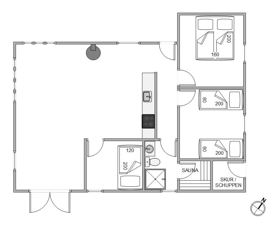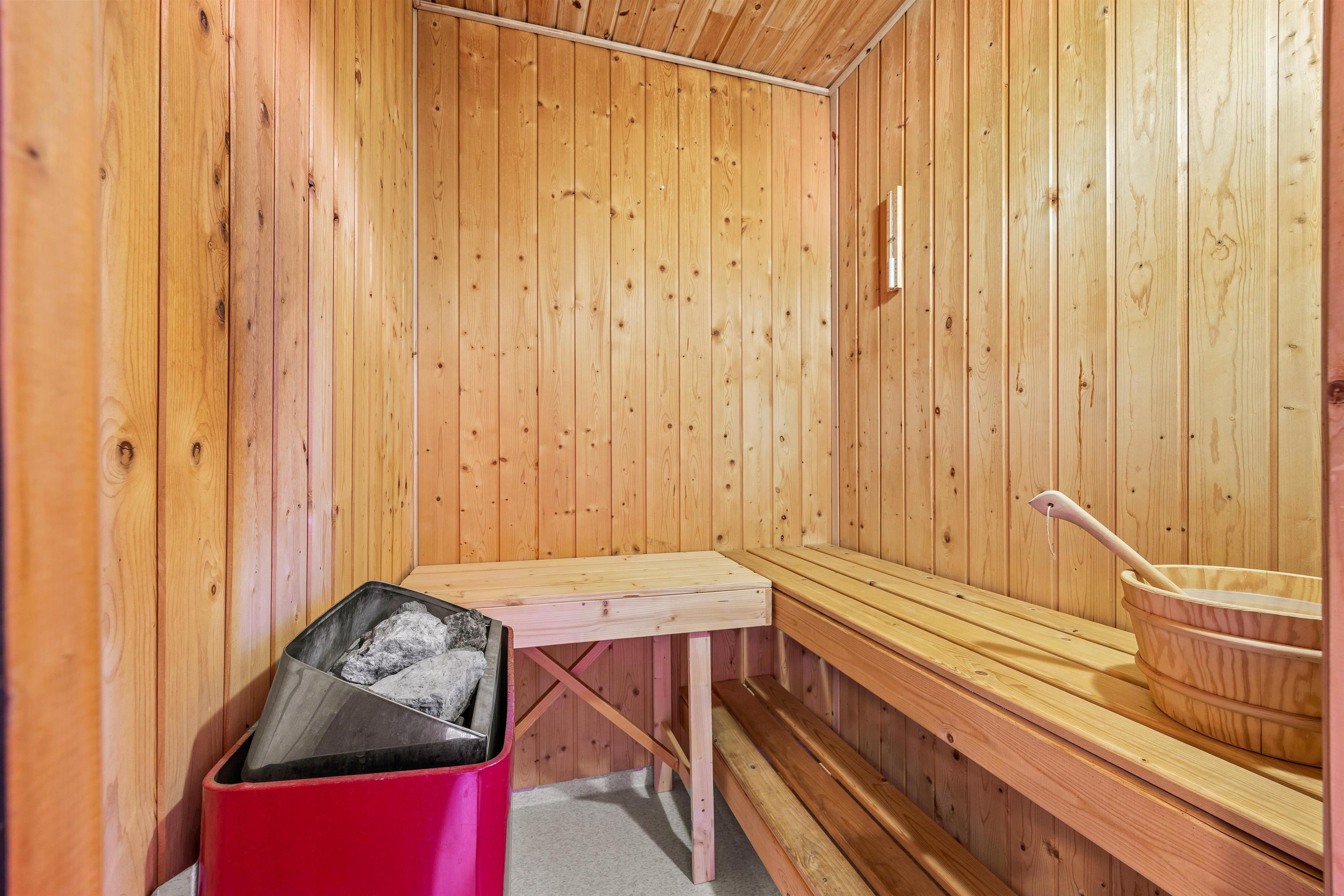 The holiday home also features an energy-efficient heat pump, allowing you to easily maintain your ideal temperature. The bathroom is fitted with underfloor heating and is located right next to the sauna, one of the holiday home's highlights. After a lovely day out exploring nature and enjoying the fresh air, there's nothing better than warming up and enjoying a relaxing moment in the sauna.