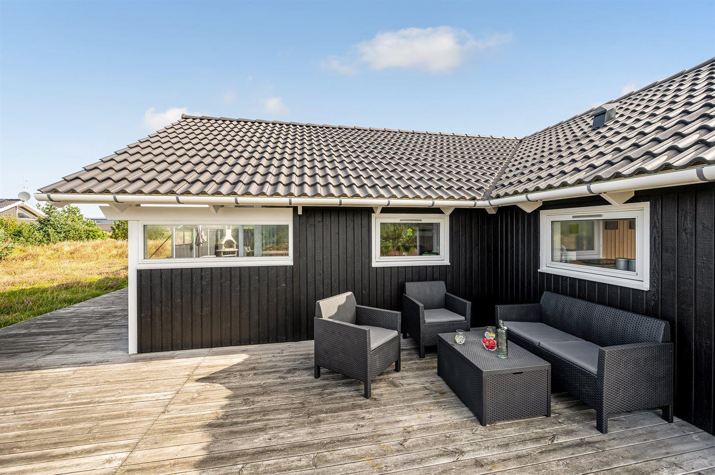 The holiday home is situated on a 2000 m² natural site. Situated 1200 m from the sea. Situated 1200 m from inlet. Nearest shop is 1200 m away. You will find a golf course in a distance of 1500 m. A 90 m² terrace belong to the holiday home. Carport is at your disposal. Parking place by the holiday home.