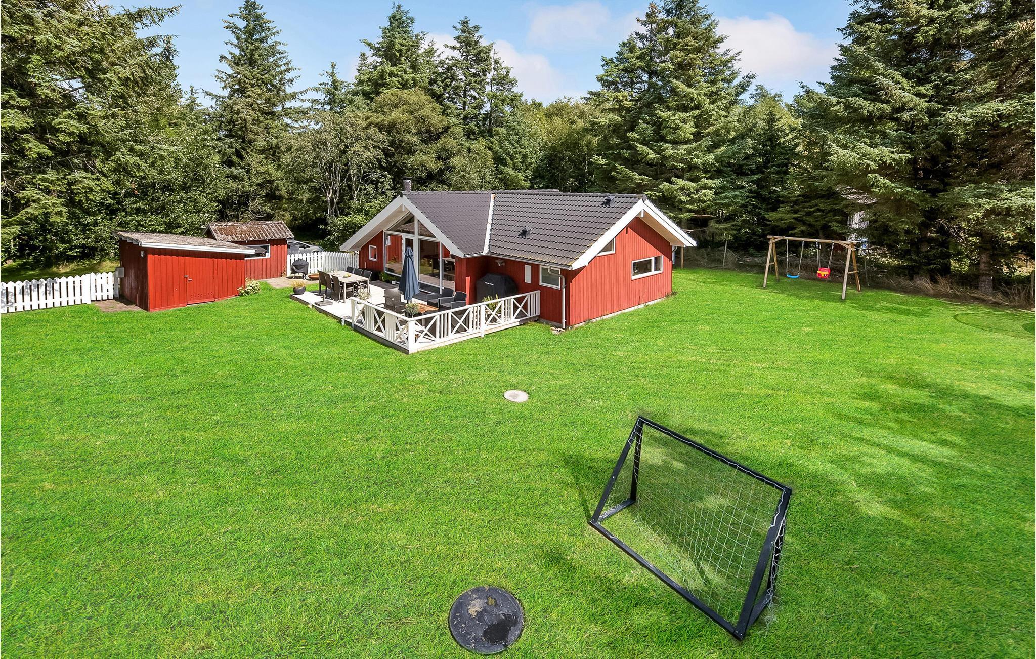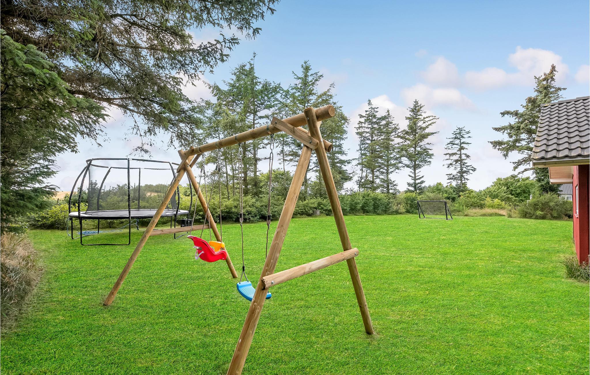 Verbringen Sie den dänischen Sommer unbedingt auch der Holzterrasse des Hauses, die mit Garten- und Loungemöbeln ausgestattet ist. Den Kindern wird es garantiert nicht langweilig, da das Grundstück viel Platz zum Spielen und Schaukeln bietet.