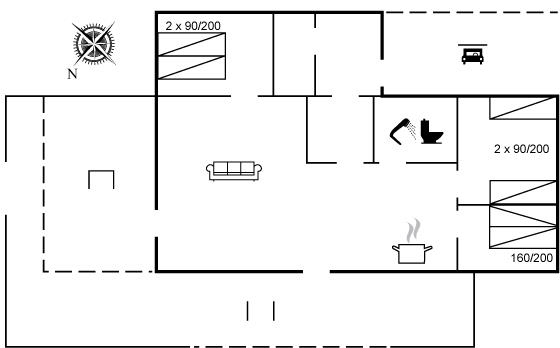 The holiday home is situated on a 850 m² garden site. natural site. Situated 400 m from the sea. Nearest shop is 8000 m away. A 50 m² terrace belong to the holiday home. Furthermore the house has a 25 m² covered terrace. Outdoor shower. Barbecue at your disposal. Carport is at your disposal. Parking place by the holiday home.