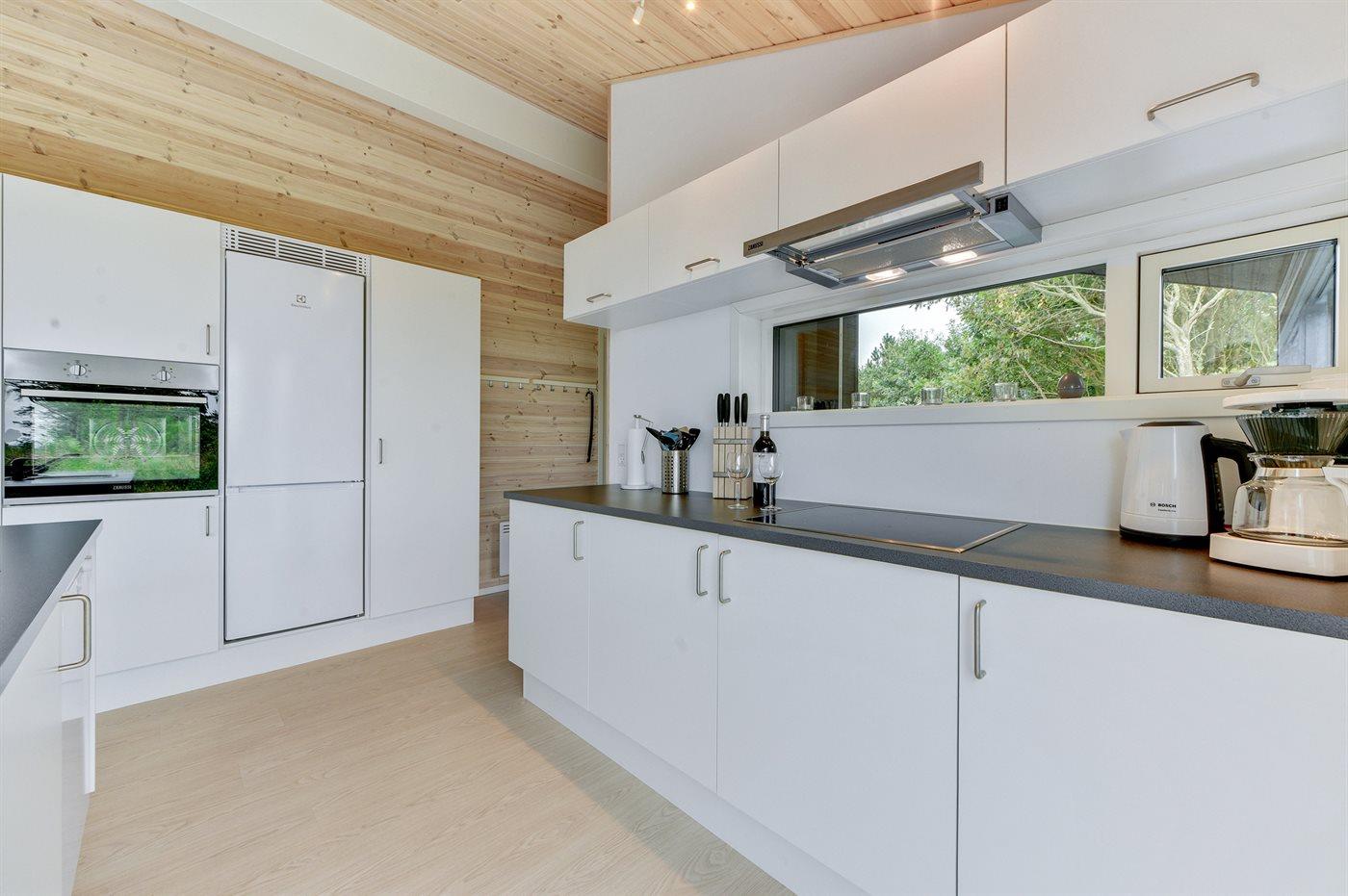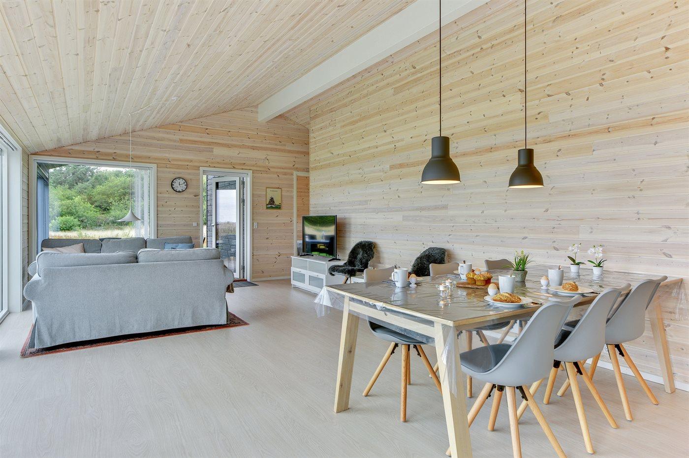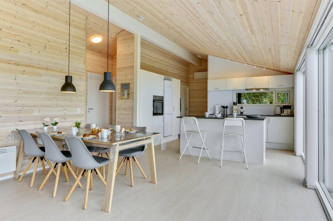 Holiday home suitable for 8 persons as well as 1 child up to 3 years. The holiday home is 110 m² and is build in 2020. No pets allowed. The holiday home is equipped with energy-saving heat pump. Floor heating in all tiled floors. The holiday home has washing machine. Tumble dryer. Freezer capacity of 140 litres. For the youngest ones there is 1 high chair.