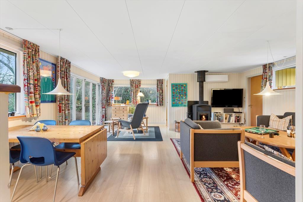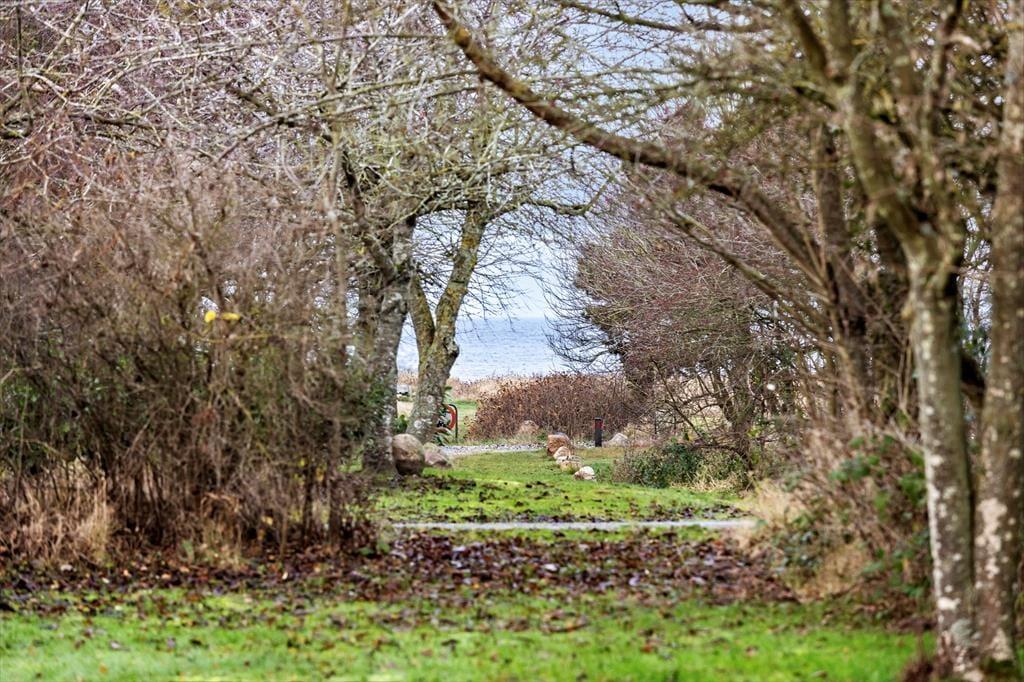 Das 1.400 m² große Grundstück ist von hohen Bäumen umgeben und bietet eine private und gemütliche Atmosphäre. Hier ist viel Platz zum Spielen, Entspannen und Genießen der Sommertage im Freien. Terrassen auf beiden Seiten des Hauses ermöglichen es Ihnen, den ganzen Tag über die Sonne zu genießen – vom Morgenlicht beim ersten Kaffee bis zur warmen Abendsonne. Von der Terrasse aus haben Sie einen Blick auf das Meer, und dank der kurzen Entfernung zum Strand sind spontane Spaziergänge oder Badeausflüge jederzeit möglich.
