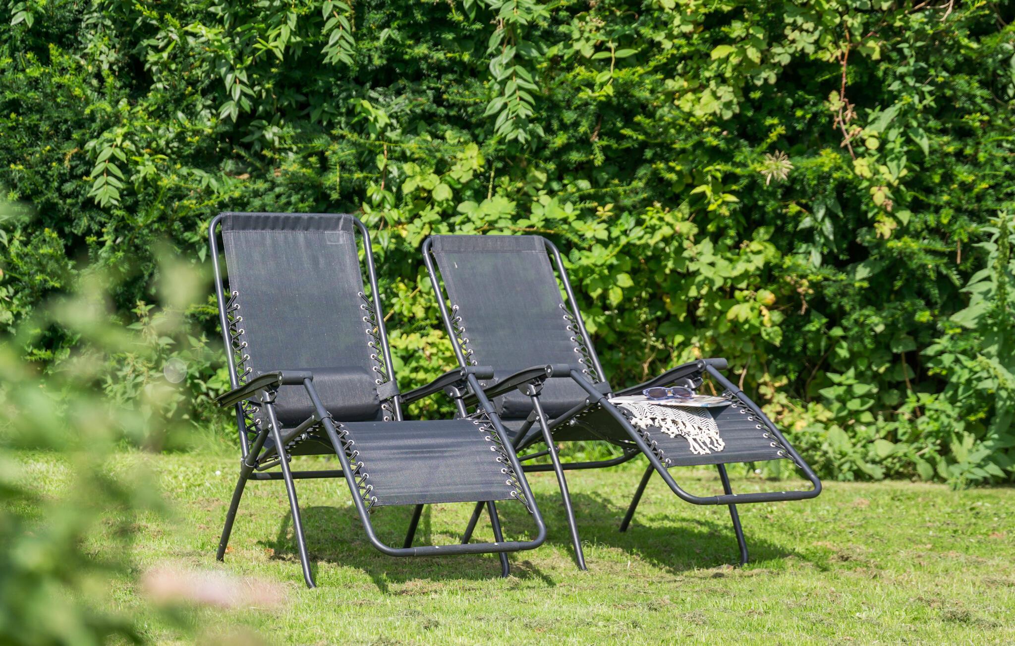 Nutzen Sie den Grill auf der Terrasse für gesellige Barbecue-Abende oder entspannen Sie auf den bereitstehenden Liegestühlen im gepflegten Garten. Die ruhige Umgebung und das grüne Gelände bieten viel Platz für Erholung und Freizeit.