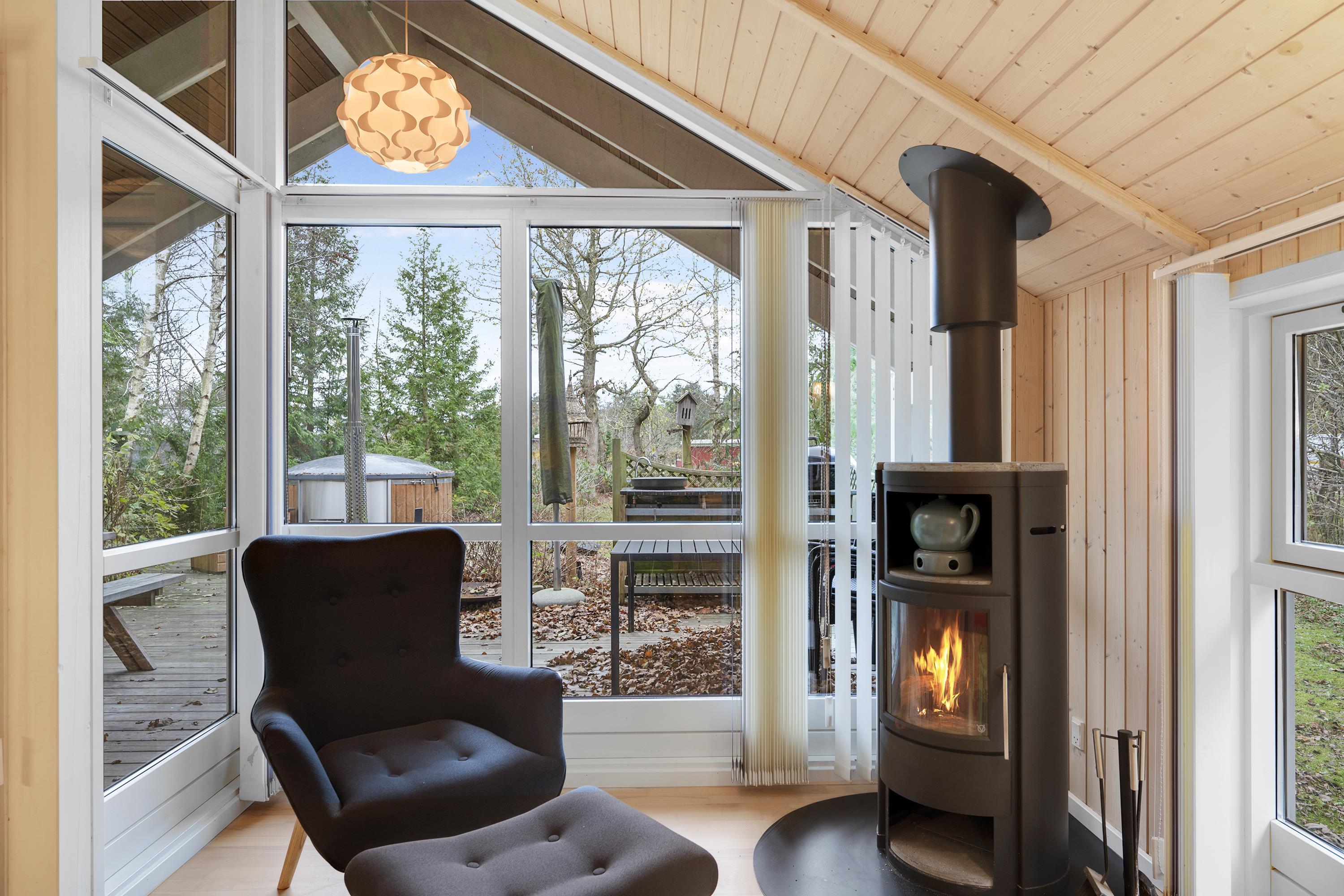 In the heart of the beautiful nature of Djursland, you will find this lovely and well-maintained holiday home. The house features an entrance/hallway with a washing machine and access to a guest toilet. A cozy, well-furnished living room with a fireplace. From here, there is access to a lovely covered terrace with garden furniture. Connected to the living room is the delightful kitchen, which includes a dishwasher. The house has sleeping arrangements spread across 3 beautiful bedrooms, all with double beds. One of the rooms also has a bunk bed. A stylish bathroom with a shower and underfloor heating. For smaller guests, there is a high chair and a crib. The house has internet access. It is situated on a lovely plot with a lawn, and here you will also find a wonderful hot tub that can be enjoyed in both summer and winter. About 600 meters from the house, there is a train station/stop for the light rail, making it easy to travel to larger cities such as Grenaa and Aarhus.