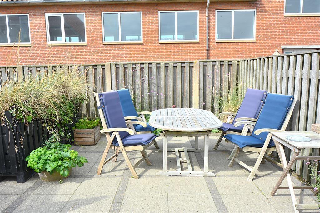 Der Garten ist mit Fliesen belegt und bietet Ihnen eine große, geschlossene Terrasse – ideal für sonnige Nachmittage, gemütliche Grillabende oder einfach pure Entspannung. Im ersten Stock erwarten Sie drei charmante Balkone – alle mit wunderschönem Ausblick – und vom Wohnzimmer aus gelangen Sie direkt auf einen weiteren Balkon, der an das Esszimmer anschließt. Auf der anderen Straßenseite liegt die rauschende Nordsee, wo Sie lange Spaziergänge unternehmen, die Füße ins Wasser tauchen oder einfach den frischen Duft des Meeres genießen können.