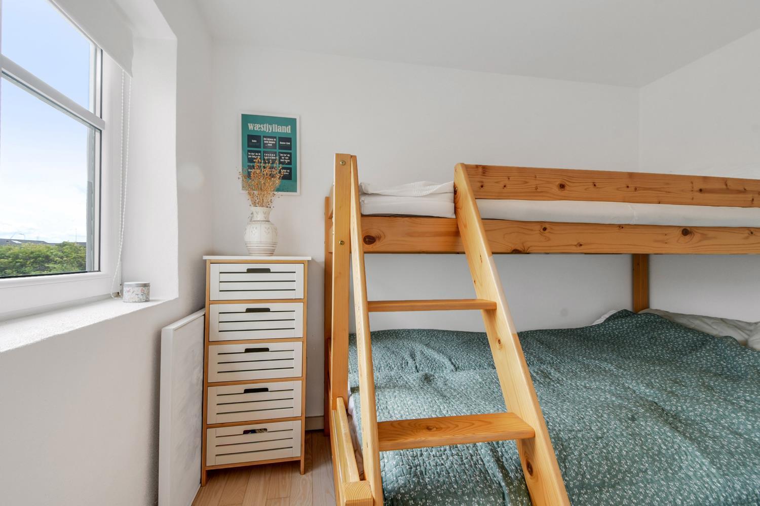 Dieses 162 m² grosse Haus wurde 2013 renoviert. 4 Schlafräume: 1DB + 1DB + 1DB + 1E die über beide Etagen verteilt sind. In Flur mit Platz zum Ablegen und Aufhängen von Garderobe und die Treppe, die zum 1. Stock führt, heisst Sie wilkommen. Neuere Küche mit Geschirrspüler, Herd mit Ceranfeldkochplatten, Kühlschrank mit Gefrierfach. Der Wohnraum ist gemütlich eingerichtet mit Sitzecke, TV mit dänischen und deutschen Programmen, Apple-TV, DVD-Spieler, Radio und CD-Spieler und Esstisch. Kleines neu renoviertes Badezimmer mit Toilette, Waschbecken, Dusche und Badewanne. Extra Badezimmer mit Toilette, Mini-Waschmaschine und Dusche. Beide Badezimmer sind mit Fliesenboden mit Fussbodenheizung. Die 2 Schlafräume mit DB Betten sind im 1. Stock. Schöne rustikale Holzböden im ganzen Haus. Nichtraucher-Haus. 1 Haustier ist erlaubt.
