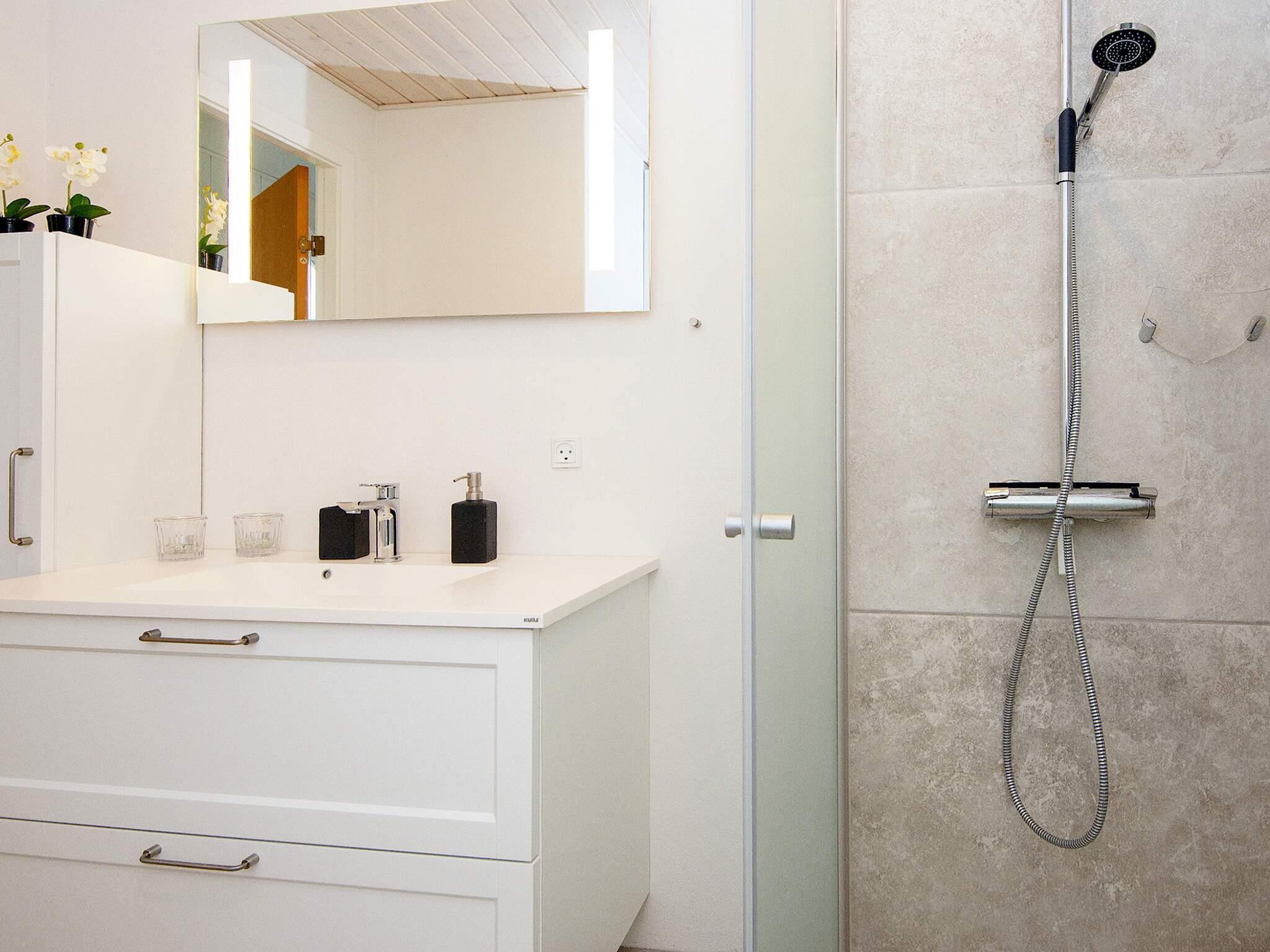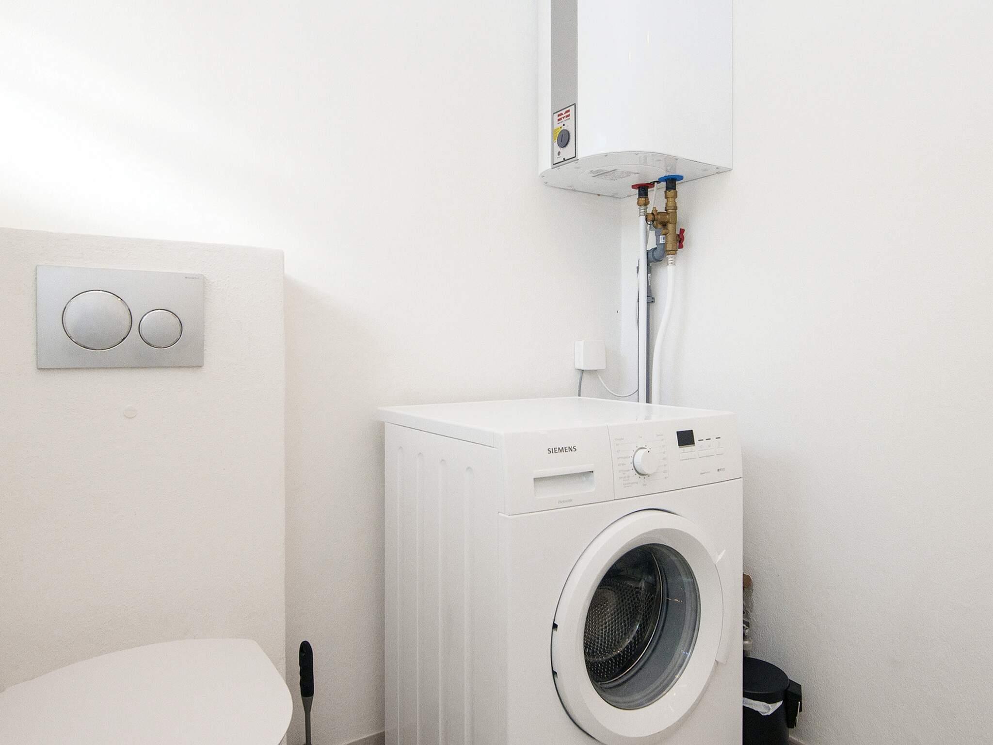 Im Wohnzimmer TV mit Chromecast sowie Holzofen und klimafreundliche Wärmepumpe. Außerdem zwei Schlafzimmer mit Doppelbett und ein drittes Zimmer mit Etagenbett mit zwei Kojen (90x200 cm). Modernes Badezimmer mit Waschmaschine und angenehmer Fußbodenheizung.