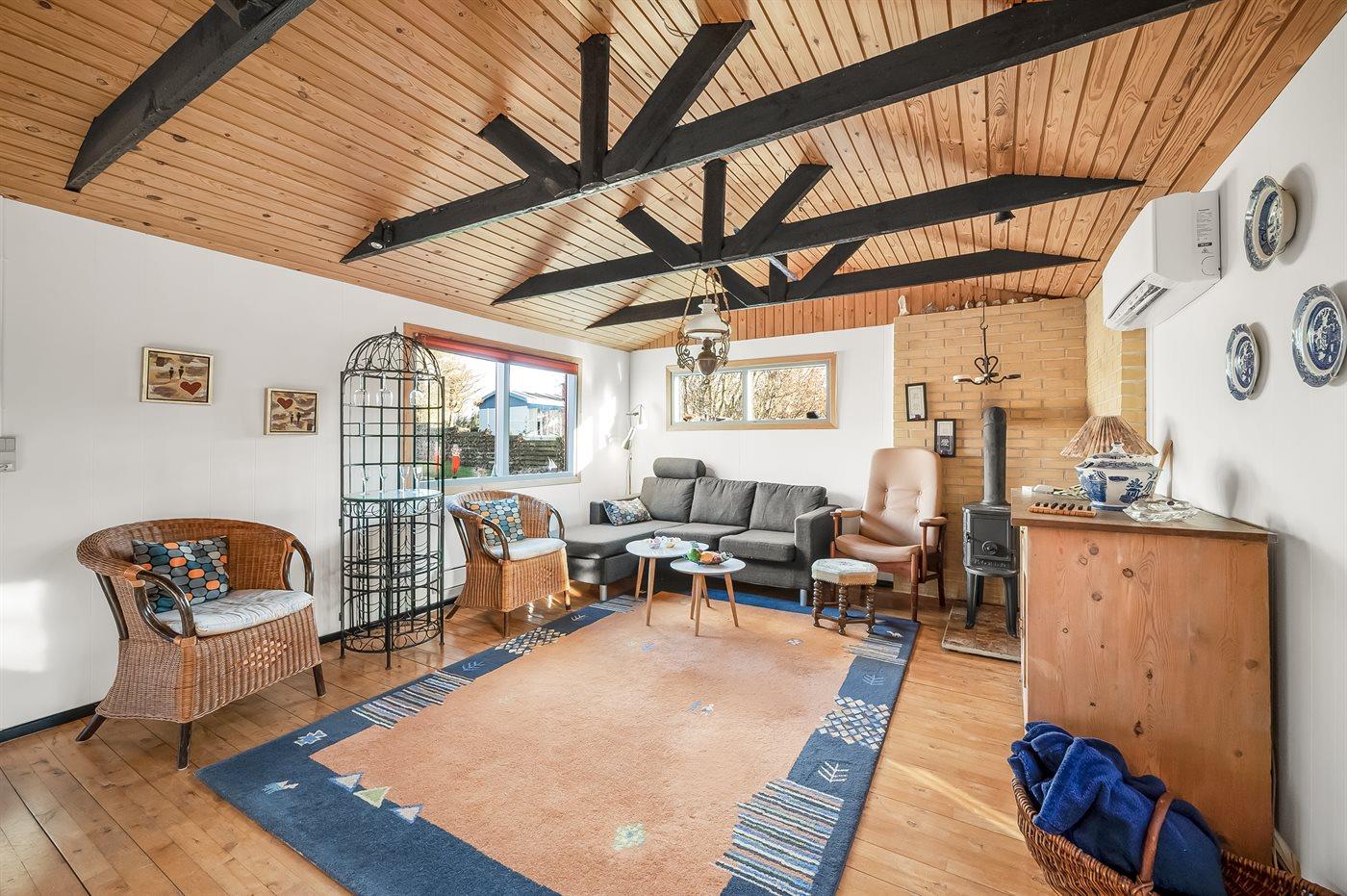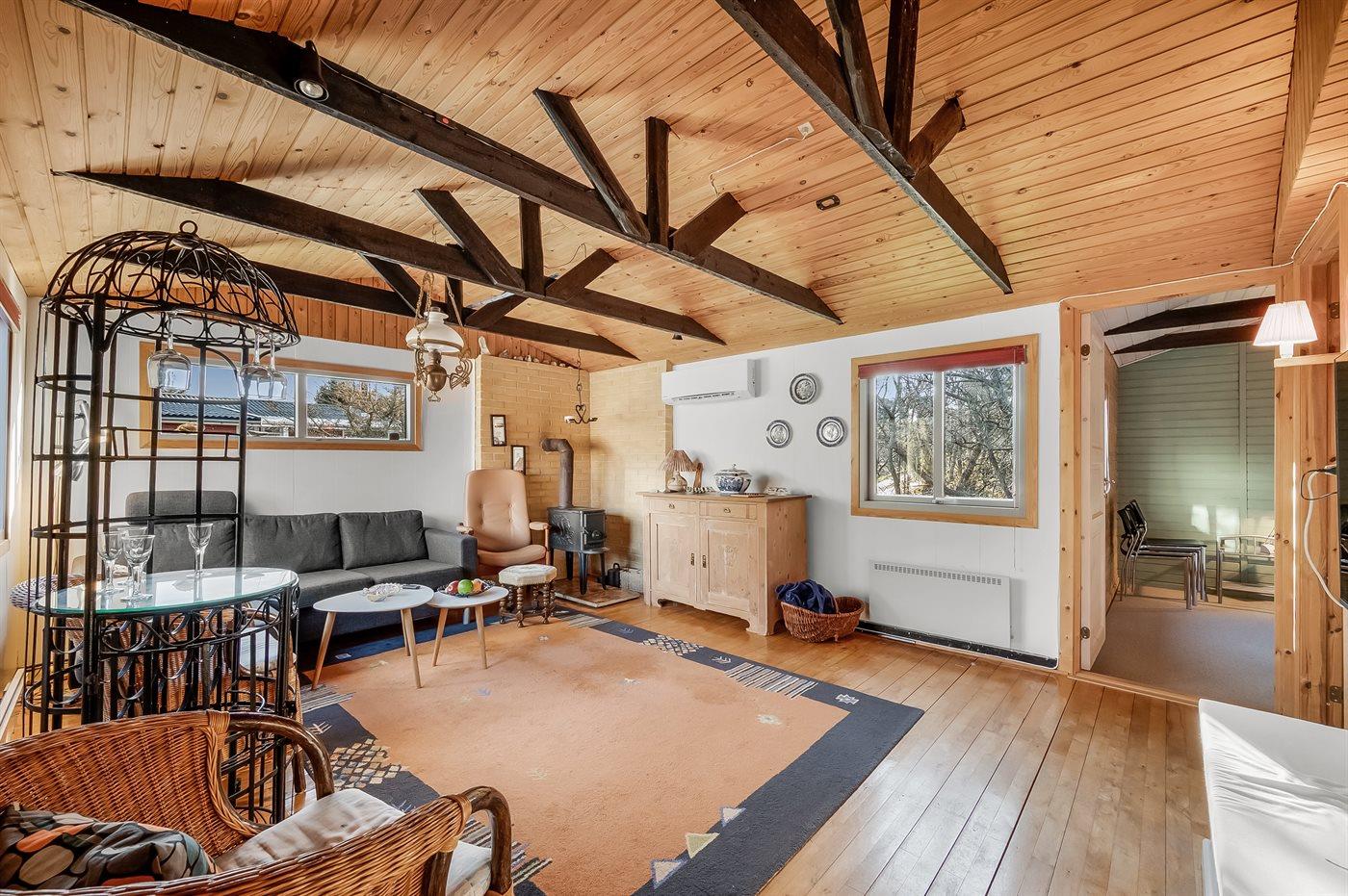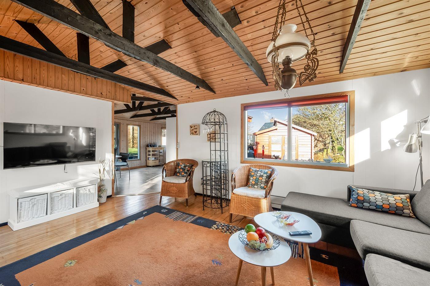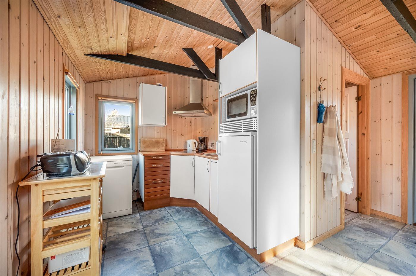 Holiday home suitable for 4 persons . The holiday home is 60 m² and is build in 1949. In 2004 the holiday home was partial renovated. You can bring along 1 pet. The holiday home is equipped with energy-saving heat pump.} Freezer capacity of 10 litres. Further more there is 1 wood-burning stove. For the youngest ones there is 1 high chair.