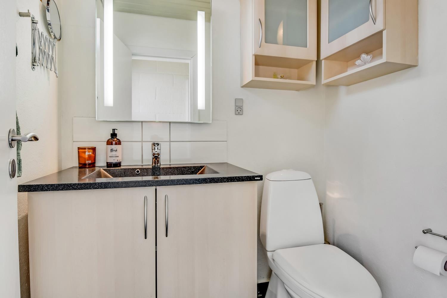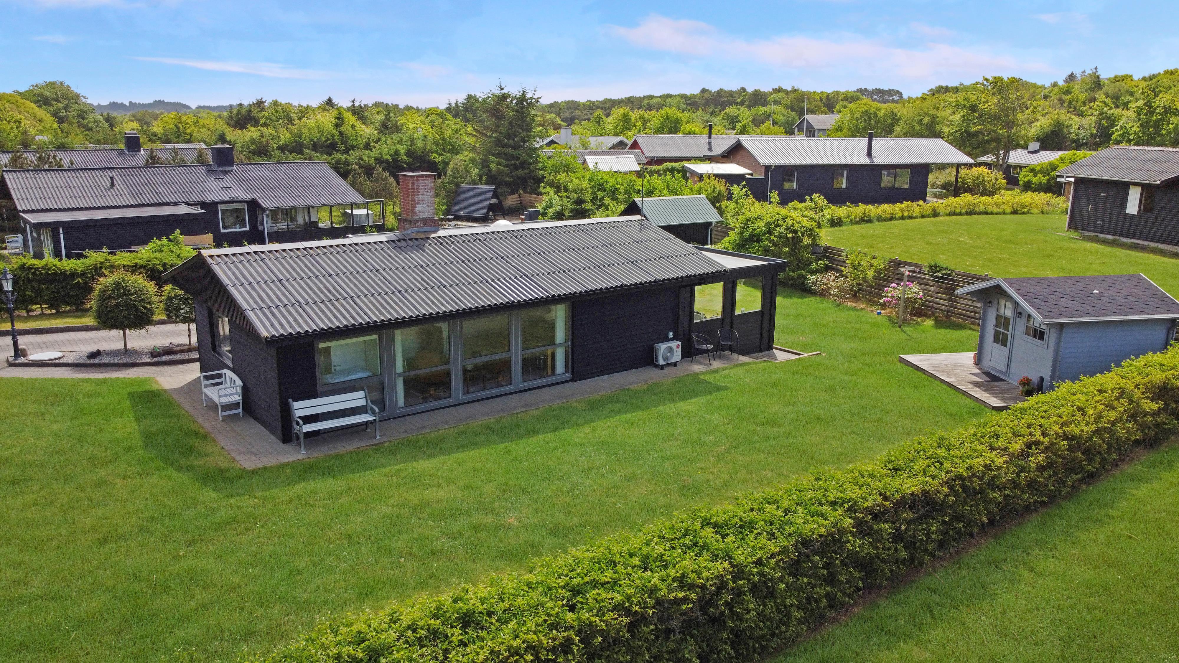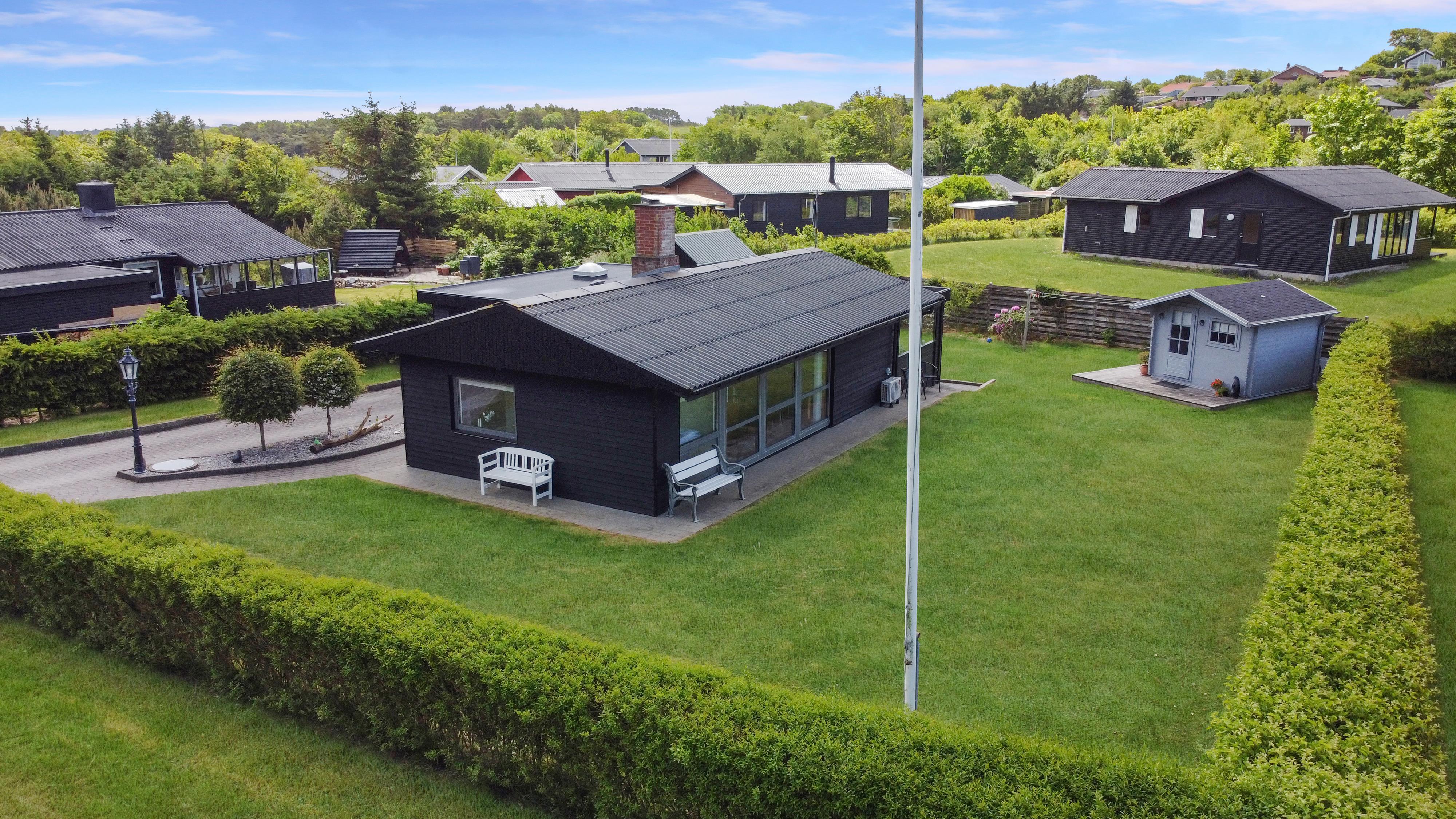 Das Haus liegt auf einem 771 m2 großen Grundstück mit Einfahrt, wo das Auto in der Nähe der Haustür geparkt werden kann, und außerdem gibt es eine große Rasenfläche um das Haus herum. Vom Wintergarten aus gelangt man auf eine überdachte Terrasse. Hier gibt es einen Grill, Gartenmöbel und Sonnenliegen, die je nach Bedarf verschoben werden können. Die Terrasse kann auch mit einem ausziehbaren Sichtschutz abgeschirmt werden, sodass man vor Wind und intensiver Sonne geschützt ist. Es besteht also die Möglichkeit, bei jedem Wetter draußen zu sitzen.