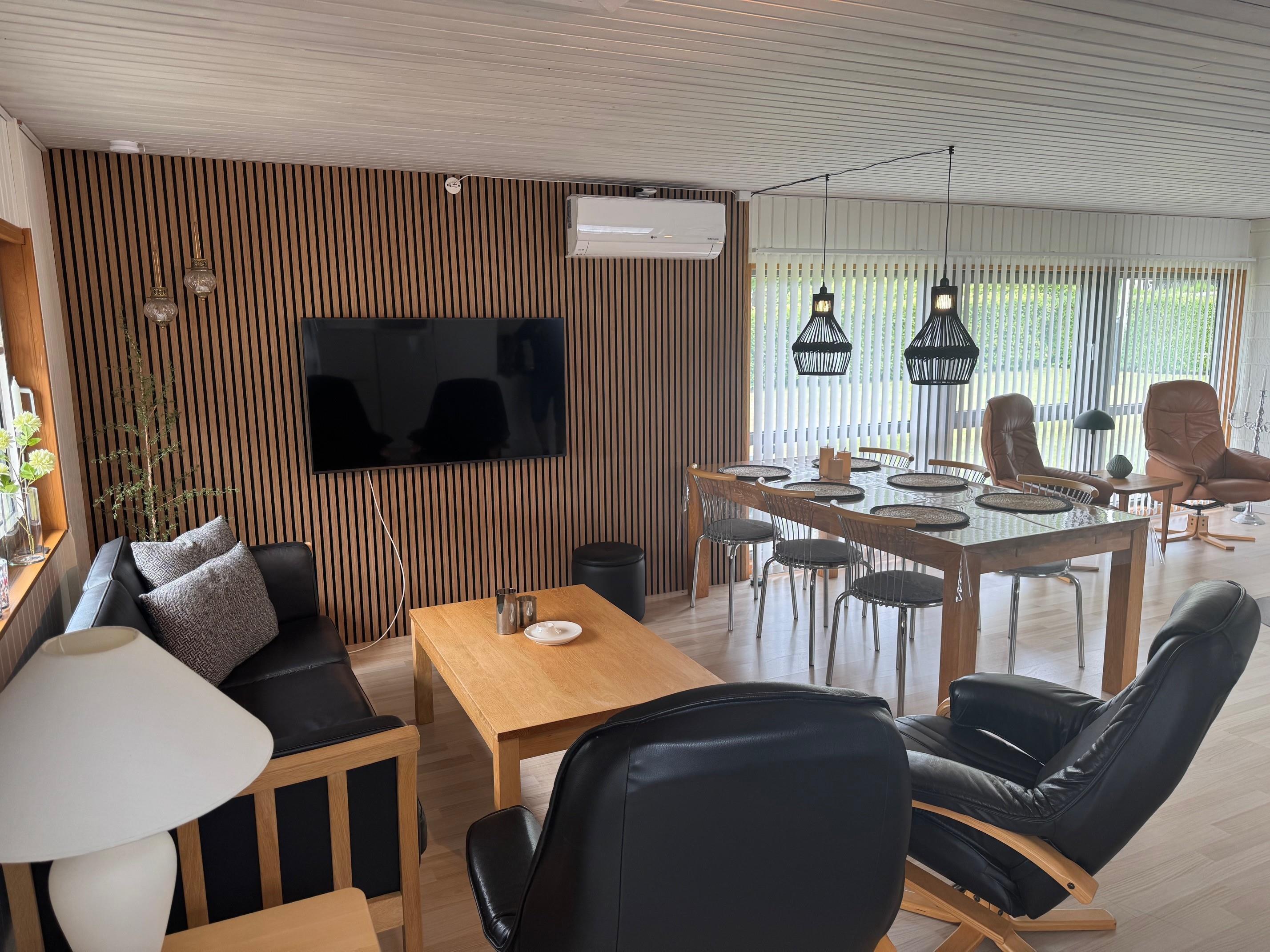Schönes Steinhaus mit 3 schönen Schlafzimmern (1 Doppelbett, 2 Einzelbetten, 1 Etagenbett), wobei 2 der Zimmer mit Linoleumboden und das letzte mit Teppichboden ausgestattet sind. Das Wohnzimmer und die Küche sind zu einem großen Wohnbereich kombiniert, in dem sich die ganze Familie versammeln kann. Das Wohnzimmer erhält viel Licht durch die großen Fenster, von denen aus man einen Blick auf den Garten hat. Die Sofaecke ist mit Ledermöbeln, einem Fernseher mit dänischen und deutschen Sendern sowie einem Radio ausgestattet. Es gibt auch kostenloses Internet. Das Wohnzimmer hat Linoleumboden und verfügt über eine Wärmepumpe und einen Kaminofen, die zu einer energieeffizienten Beheizung des Hauses beitragen. Vor dem Kamin befinden sich auch zwei Sessel, um die Wärme zu genießen, vielleicht während man ein Buch liest. Die Küchenecke ist gut ausgestattet mit allem, was man braucht: Elektroherd, Backofen, Abzugshaube, Kühl-/Gefrierschrank und Spülmaschine. Gegenüber der Küchenecke steht der Esstisch mit Platz für 6 Personen. Von der Küche aus gelangt man zu einem gemütlich eingerichteten Wintergarten mit großen Fenstern zum Garten. Vom einen Schlafzimmer aus hat man Zugang zum großen Badezimmer des Hauses mit Toilette, Waschbecken und Dusche mit Dachfenster, Waschmaschine und Fliesenboden. Darüber hinaus gibt es eine Gästetoilette im Eingangsbereich mit Toilette und Waschbecken. Nichtraucherhaus. Maximal 1 Haustier erlaubt.