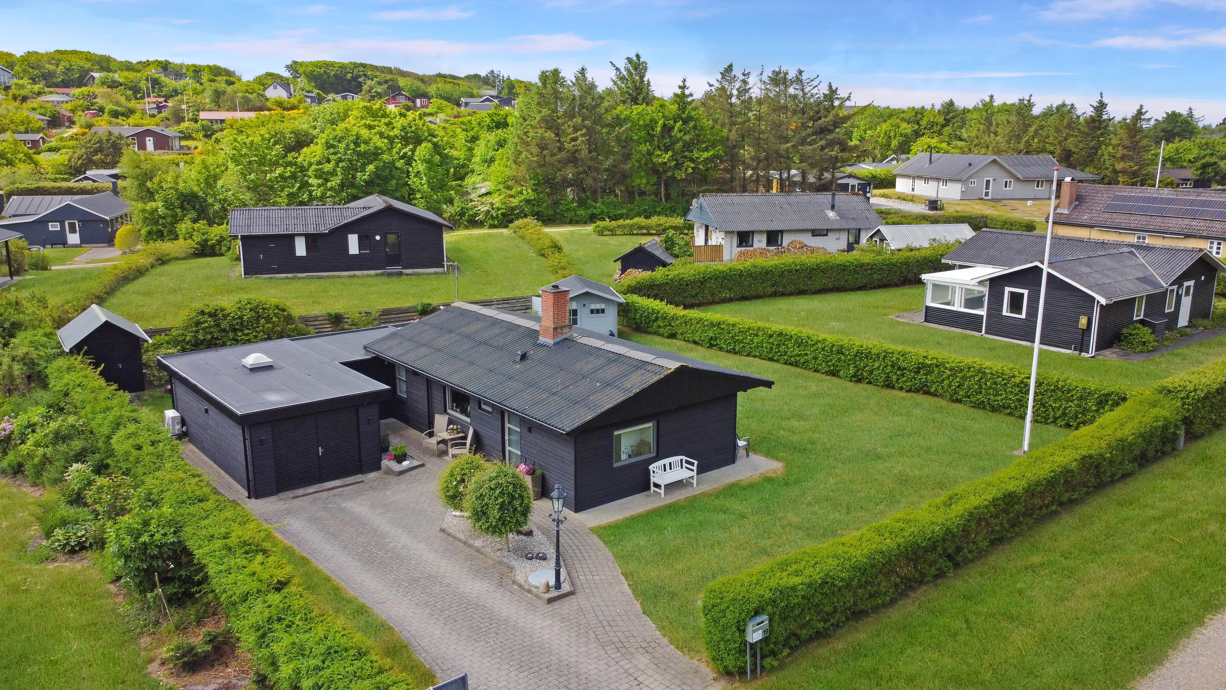 Das Haus befindet sich in der wunderschönen Gegend von Toftum Bjerge und ist nur wenige hundert Meter zu Fuß von der Limfjord entfernt. Toftum Bjerge ist wirklich eine fantastische Gegend, sowohl wenn man einen aktiven Urlaub haben möchte als auch für eine Pause vom hektischen Alltag, um einfach die Natur zu genießen. Es gibt reichlich Gelegenheit die Wanderstiefel einzulaufen, indem man entlang der bis zu 40 Meter hohen Küstenklippe spazieren geht, die einen Aussichtspunkt auf Thyborøn, Thy, Thyholm und Oddesund bildet. Wenn man zum ruhigen Wasser des Limfjords an den Strand geht, kann man die Paraglider beobachten, die von der Klippe aus fliegen, oder die Surfer im Wasser. Wenn man eine Wasserratte ist, kann man selbst versuchen zu surfen oder einfach schwimmen gehen. Ein paar hundert Meter vom Haus entfernt liegt der Humlum Golfplatz. Interessiert man sich für Golf, ist dies eine gute Möglichkeit für diejenigen, die eine gute Runde Golf in der wunderschönen Umgebung genießen möchten. Außerdem gibt es verschiedene Radwege, auf denen man die Gegend erkunden kann. In wenigen Autominuten erreicht man die gemütliche Kleinstadt Struer. Hier kann man in den örtlichen Geschäften einkaufen und auch das B&O Museum besuchen.