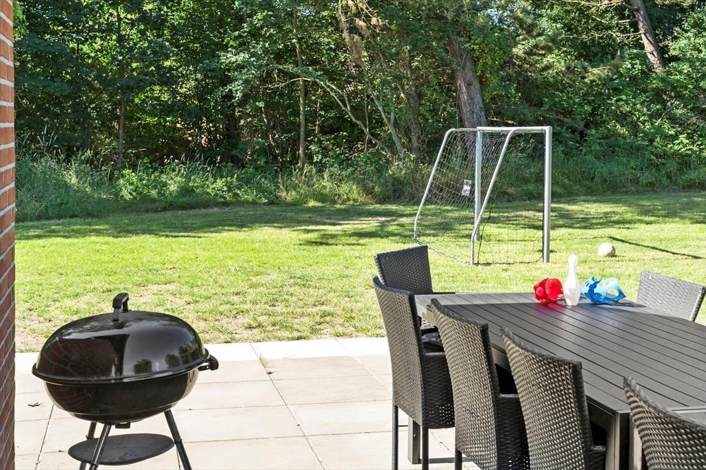 Draußen erwartet dich eine große, teilweise überdachte Terrasse mit bequemen Gartenmöbeln, ideal für lange Sommertage und ruhige Abende in guter Gesellschaft. Die frische Nordseeluft, das Zwitschern der Vögel und die sanfte Meeresbrise schaffen eine besondere Atmosphäre, die das Gefühl von totaler Entspannung vermittelt. Hier kannst du morgens bei einer Tasse Kaffee entspannen, abends grillen oder dich in einen Liegestuhl legen und den Gedanken freien Lauf lassen, während du dem Konzert der Natur lauschst. Das große Gelände bietet außerdem Platz, um auf der Rasenfläche Fußball zu spielen, wo die Tore für ein Familienmatch bereitstehen. Und für zusätzliche Erholung kannst du ein erfrischendes Bad im Außen-Whirlpool nehmen, der dir eine angenehme Wärme spendet, während du die Aussicht auf die grüne Landschaft genießt — vor allem an kühleren Tagen. Der Garten und die Terrasse laden zum Spielen, Entspannen und Selbstverwöhnen ein, was diesen Ort zum idealen Platz für deinen perfekten Urlaub macht.