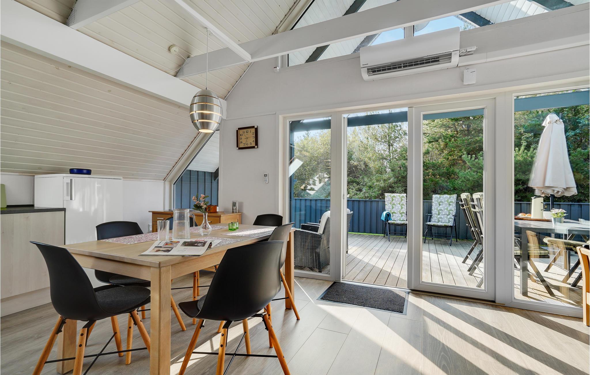 Willkommen in diesem gemütlichen Ferienhaus, das ruhig in Toftum nicht weit vom Damm zum Festland liegt. Auf der schönen Terrasse können Sie den Urlaub auf den guten Gartenmöbeln genießen und wundervolle Grillabende veranstalten, während Sie sich über die Erlebnisse des Tages austauschen. Die gepflegte Küche ist zum Essbereich und dem gemütlichen Wohnzimmer mit bequemen Möbeln hin offen. Hier können Sie gemütliche Stunden vor dem Fernseher und dem Holzofen verbringen. Im Wohnzimmer gibt es eine schräge Decke und schönes Licht, die zusammen mit dem Holzofen eine gute Atmosphäre im Haus schaffen. Die Wärmepumpe eignet sich gut als zusätzliche Wärmequelle. Nach einem langen Spaziergang ist es großartig sich in der Sauna aufzuwärmen. Die Waschmaschine befindet sich im Badezimmer und sorgt dafür, dass Sie nicht mit einem großen Haufen schmutziger Wäsche aus dem Urlaub zurückkehren. Selbstverständlich gibt es WLAN im Haus.