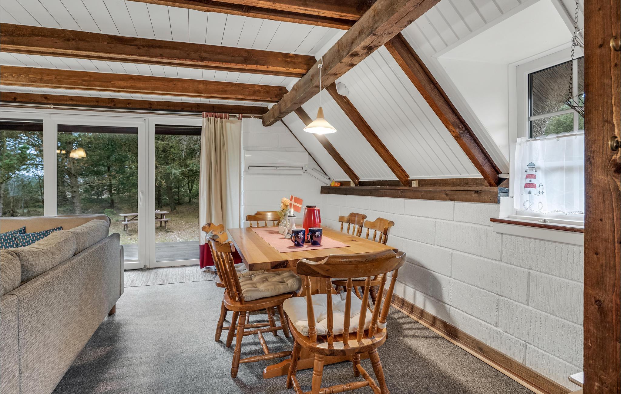 Das charmante, reetgedeckte Nurchdachhaus begrüßt Sie in schöner ruhiger Lage auf einem von Bäumen umgebenen Grundstück. Die ansprechenden Räume mit dekorativen Deckenbalken bilden den idealen Rahmen für eine schöne gemeinsame Zeit in wohnlichem Ambiente. Essen Sie mit herrlichem Blick ins Freie. Nach einem erlebnisreichen Tag lädt das Wohnzimmer mit dem bequemen Sofa zu einem Film- oder Spieleabend ein, hier können Sie noch lange gemütlich zusammensitzen, während die Flammen im Kaminofen prasseln.