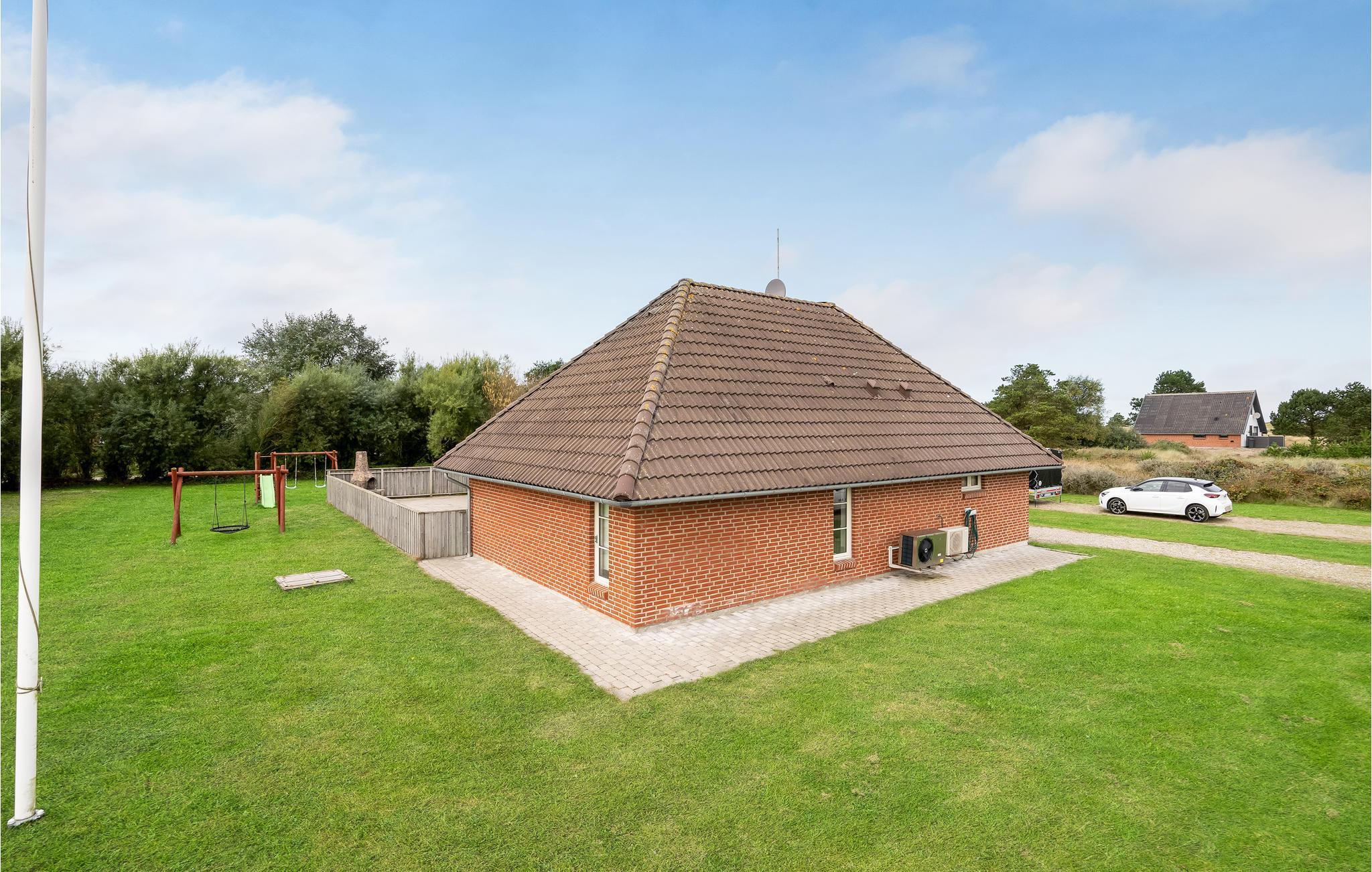 Das große Grundstück bietet viel Platz für Spiel und Spaß. Die Wiese lädt zum Ballspielen ein. Darüber hinaus gibt es einen herrlichen Spielplatz. Auf der Terrasse können Sie die Sonne genießen oder im gemauerten Grill leckere Mahlzeiten zubereiten. 31 m² großer Pool. Nach dem Schwimmen können Sie sich in Whirlpool und Sauna entspannen. Die Küche ist mit allen modernen Hilfsmitteln ausgestattet.