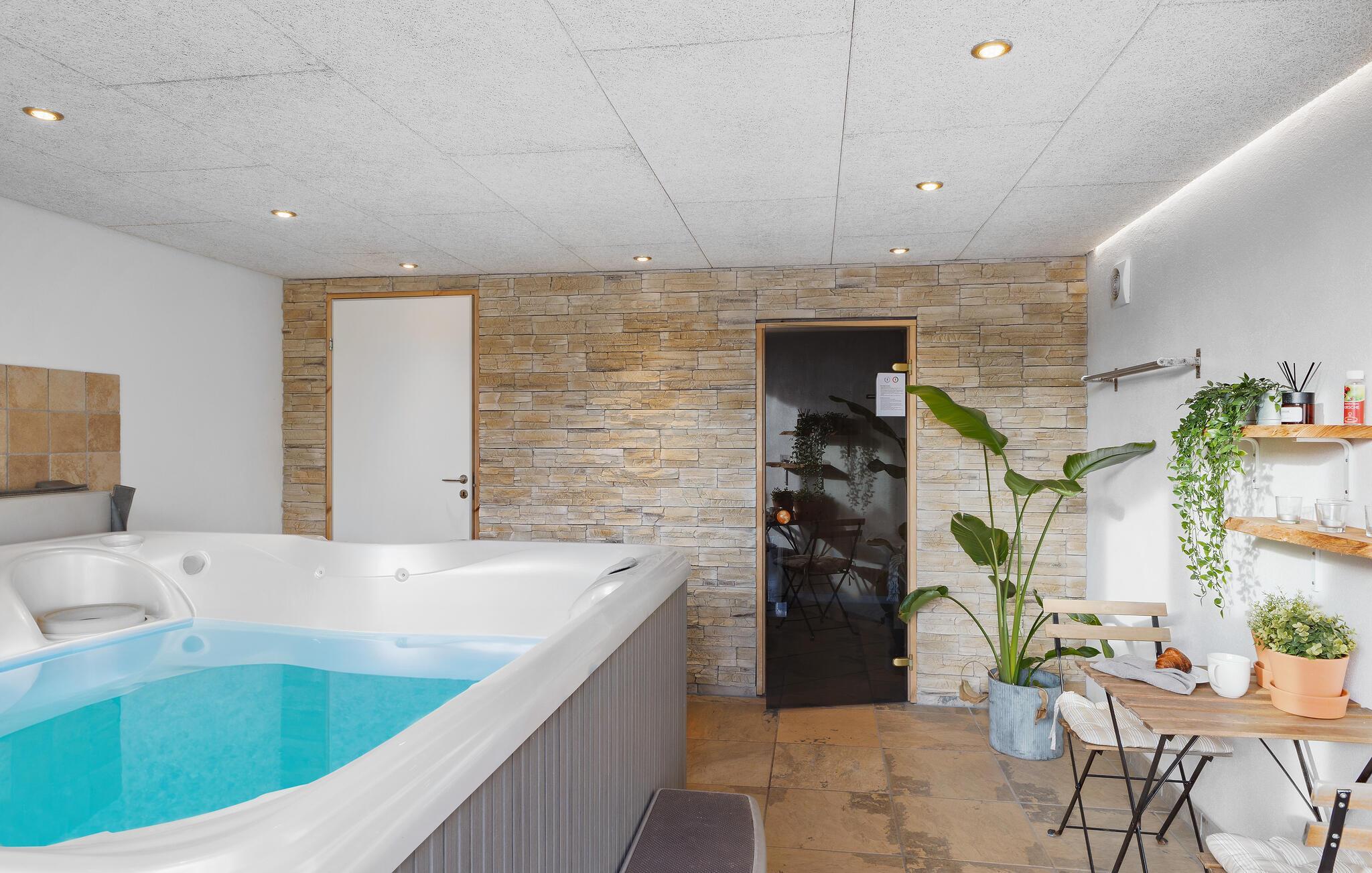 Phantastisches Ferienhaus in schöner Lage und mit Blick auf das Wattenmeer, es liegt auf der Ostküste von Rømø. Hier treffen Sie auf eine schöne Architektur. Die Wohnräume liegen im Hauptgebäude und im Anbau - zwischen den Häusern gibt es einen schönen Hof, in ihm und in den Häusern liegen die Räume auf unterschiedlichen Niveaus. Es gibt eine Treppe ins Schlafzimmer oder im Untergeschoss gibt es Treppenstufen von der Küche ins Wohnzimmer. Diese etwas untraditionelle Raumaufteilung ist sehr interessant, hinzu kommt noch ein ganz besonderer Lichteinfall. Sie werden auch vom Wellnessbereich begeistert sein und seinen Whirlpool für 6.