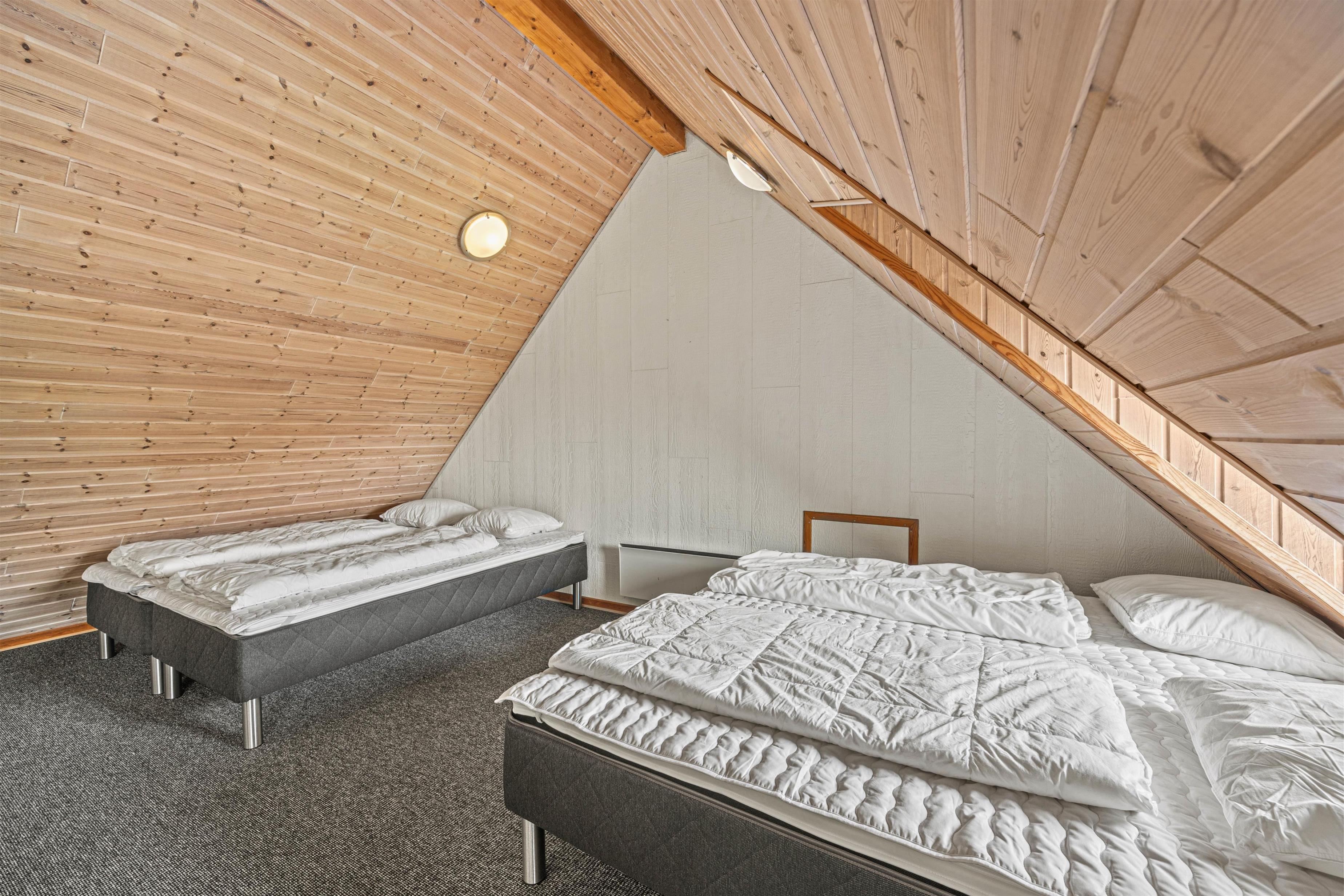 The large dining table accommodates everyone, perfect for sociable games evenings. The adjoining open-plan kitchen includes a dishwasher, microwave and fridge-freezer, ideal for preparing delicious meals. The mezzanine level not only offers 4 sleeping spaces but also features a table football for impromptu tournaments. The remaining sleeping accommodation is distributed across 6 comfortable bedrooms with double beds.