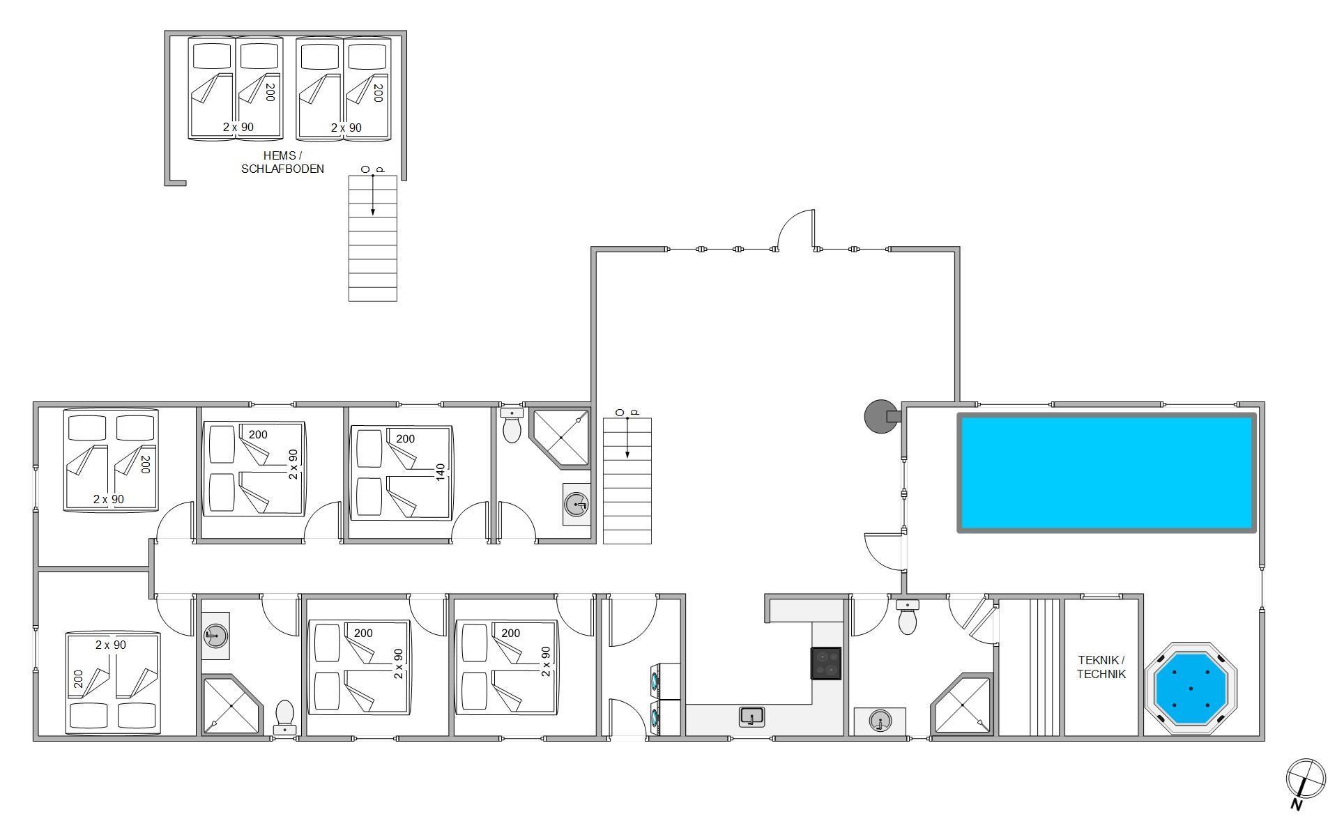 Welcome to this pool house, which awaits you with numerous excellent features. In addition to the pool, there's a hot tub, sauna and various leisure facilities. Spread across 244 square metres, the holiday home accommodates 16 guests and welcomes up to 3 dogs. Perfect for groups or extended families, this holiday retreat includes complimentary final cleaning, allowing you to enjoy your holiday right up to departure.