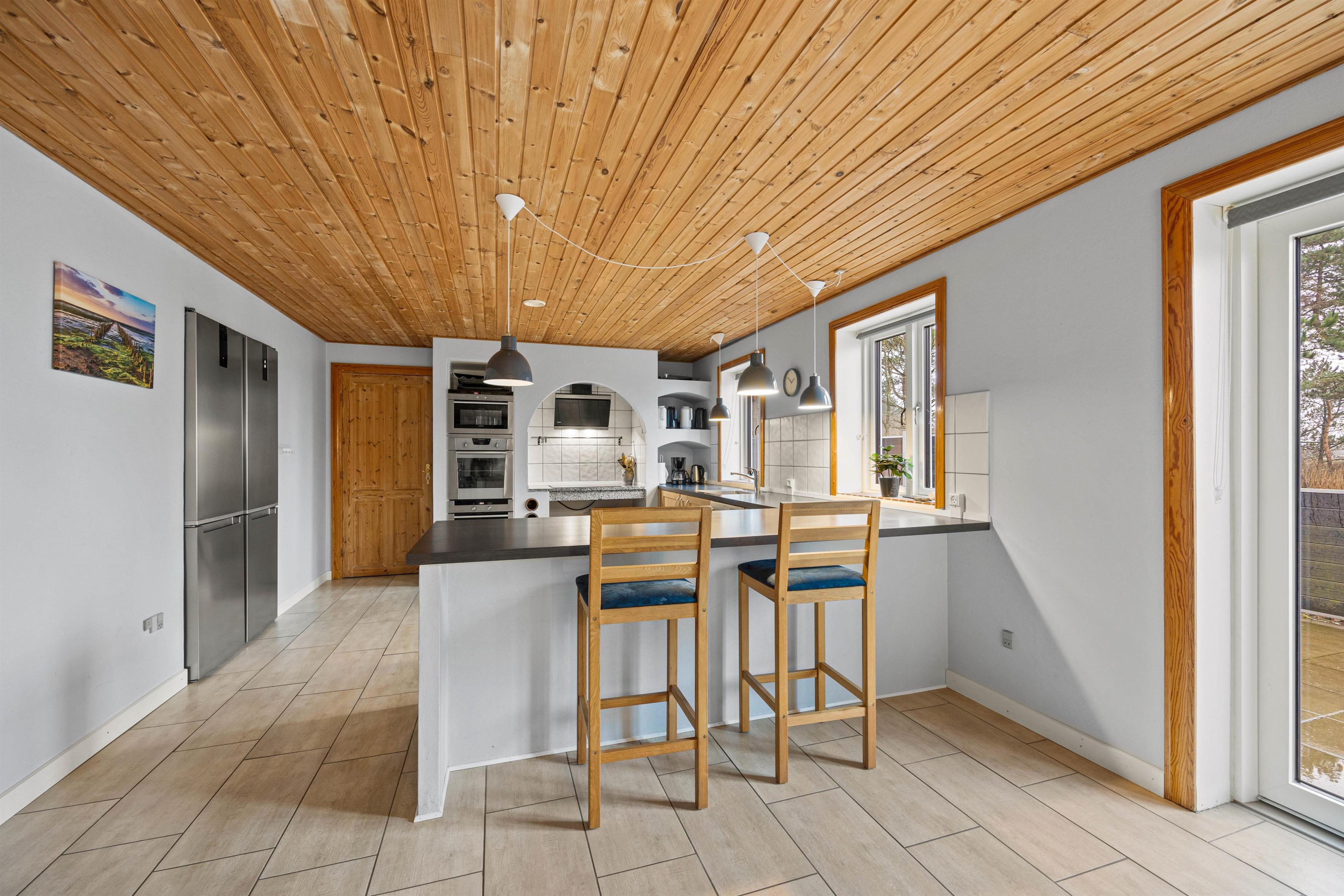The holiday home at Søvej 1 sits on a 2,134-square-metre natural plot with a fantastic, partially sheltered terrace perfect for lounging. Sun loungers and garden furniture provide comfortable spots to relax and enjoy the fresh sea air. There's also a barbecue available for outdoor dining.