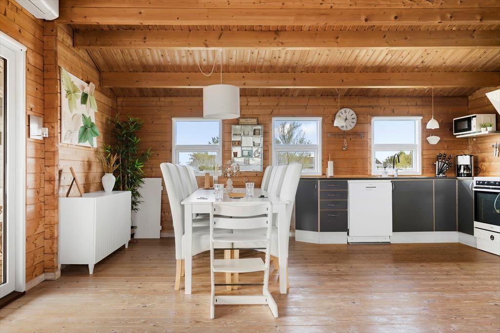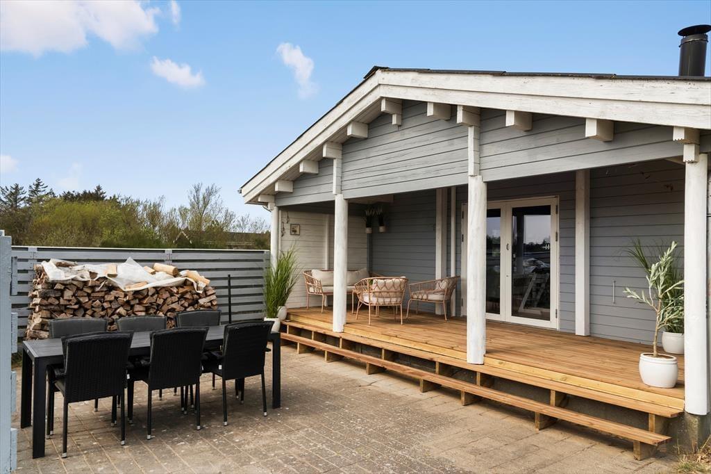 Mitten in der nordjütischen Naturperle Tornby finden Sie dieses charmante Ferienhaus in Kragekæret 17 – ein echtes Holzferienhaus, das mit seinem klassischen Stil den perfekten Rahmen für einen entspannten Urlaub in der Nähe der Nordsee bietet. Hier fällt es leicht, einen Gang herunterzuschalten und die Ruhe auf sich wirken zu lassen, während Sie sowohl Komfort als auch Gemütlichkeit genießen – draußen wie drinnen.