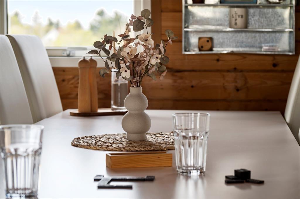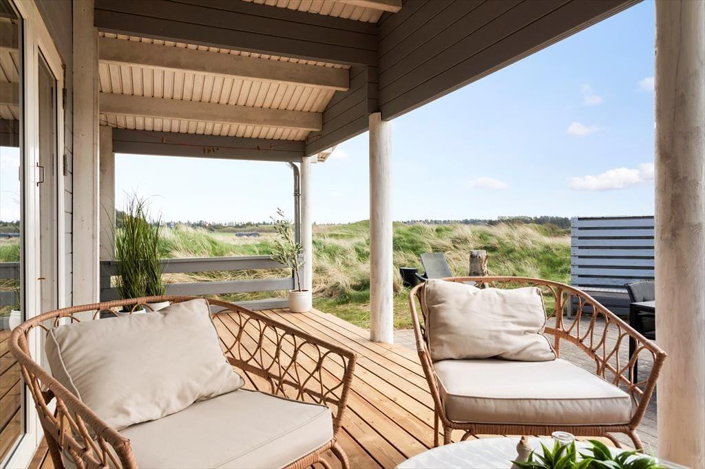 Draußen wartet eine große, überdachte Holzterrasse auf Sie, die von morgens bis abends zum Verweilen einlädt – egal ob bei strahlendem Sonnenschein oder einem sanften Sommerregen. Die hochwertigen Gartenmöbel bieten den perfekten Rahmen für ein ausgedehntes Frühstück im Freien oder ein gemütliches Abendessen unter dem offenen Himmel. In der herrlichen Natur ringsum können Sie dem Zwitschern der Vögel lauschen und die frische Meeresbrise spüren, für die Tornby so bekannt ist. Das großzügige Naturgrundstück rund ums Haus bietet viel Platz zum Spielen, Entspannen und Innehalten – mit dem wechselnden Licht und den Farben der Jahreszeiten als stimmungsvolle Kulisse.