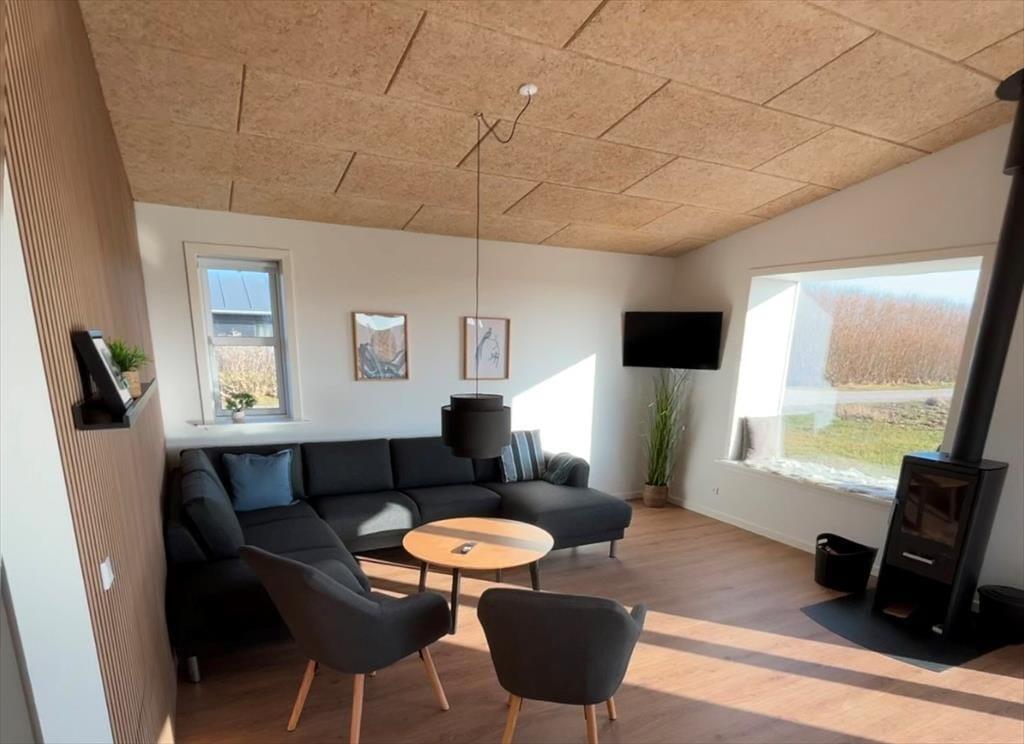 Im Inneren erwartet dich eine Einrichtung, die modern, stilvoll und überaus einladend ist. Der offene Wohnbereich mit Küche und Wohnzimmer in einem lädt zu geselligem Beisammensein ein – egal ob beim Kochen, Spielen oder beim Entspannen auf dem Sofa. Die großen Fenster sorgen für einen schönen Lichteinfall, und durch die hellen Materialien und modernen Möbel wirkt das Haus geräumig und angenehm – auch an Tagen, an denen der Wind draußen um die Ecken pfeift. Es wurde auf jedes Detail geachtet, und man spürt sofort, dass hier Funktionalität und Ästhetik Hand in Hand gehen. Das Haus bietet Platz für Familie und Freunde, und da Haustiere erlaubt sind, muss auch dein vierbeiniger Freund nicht zu Hause bleiben. Hier ist Platz für alle.
