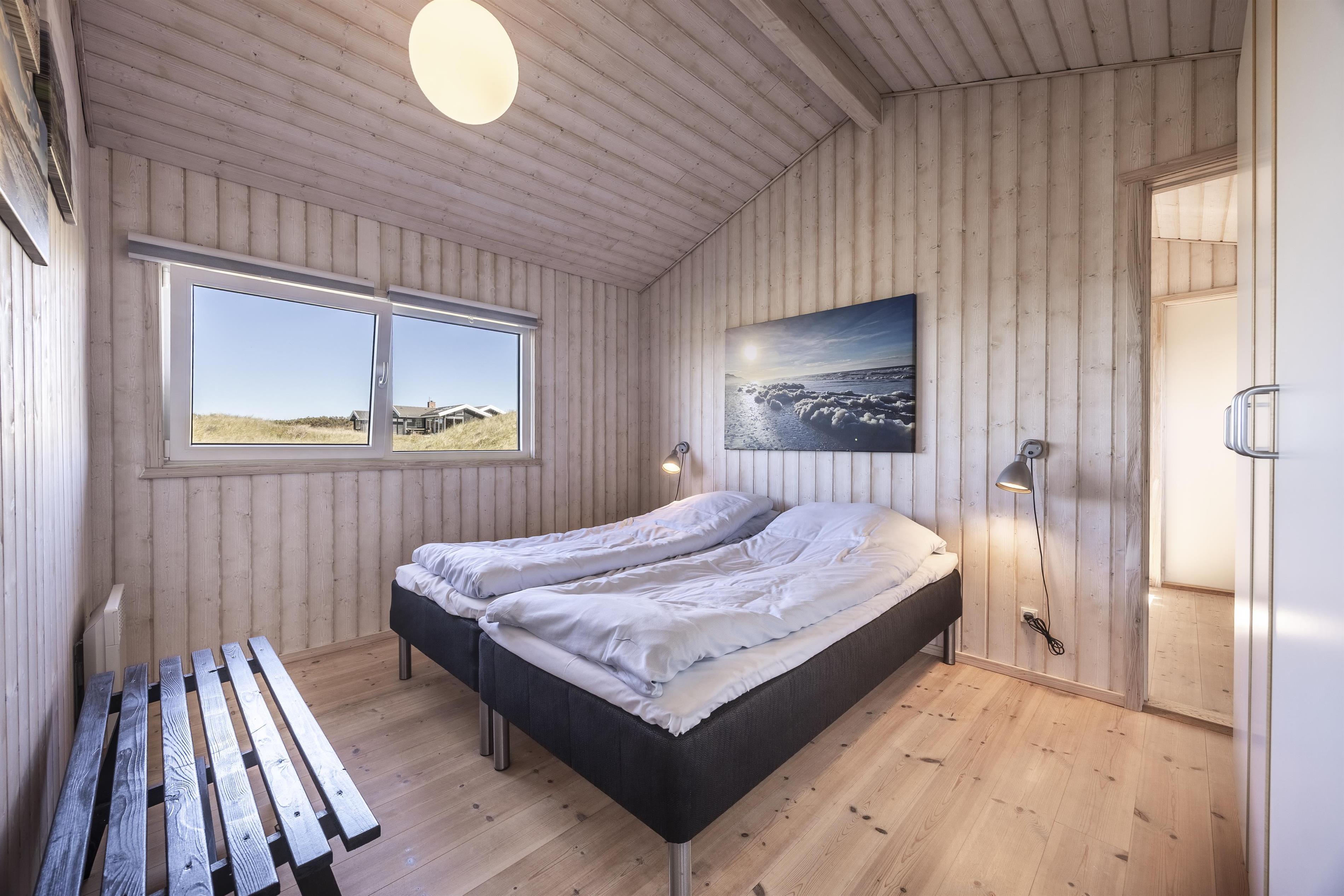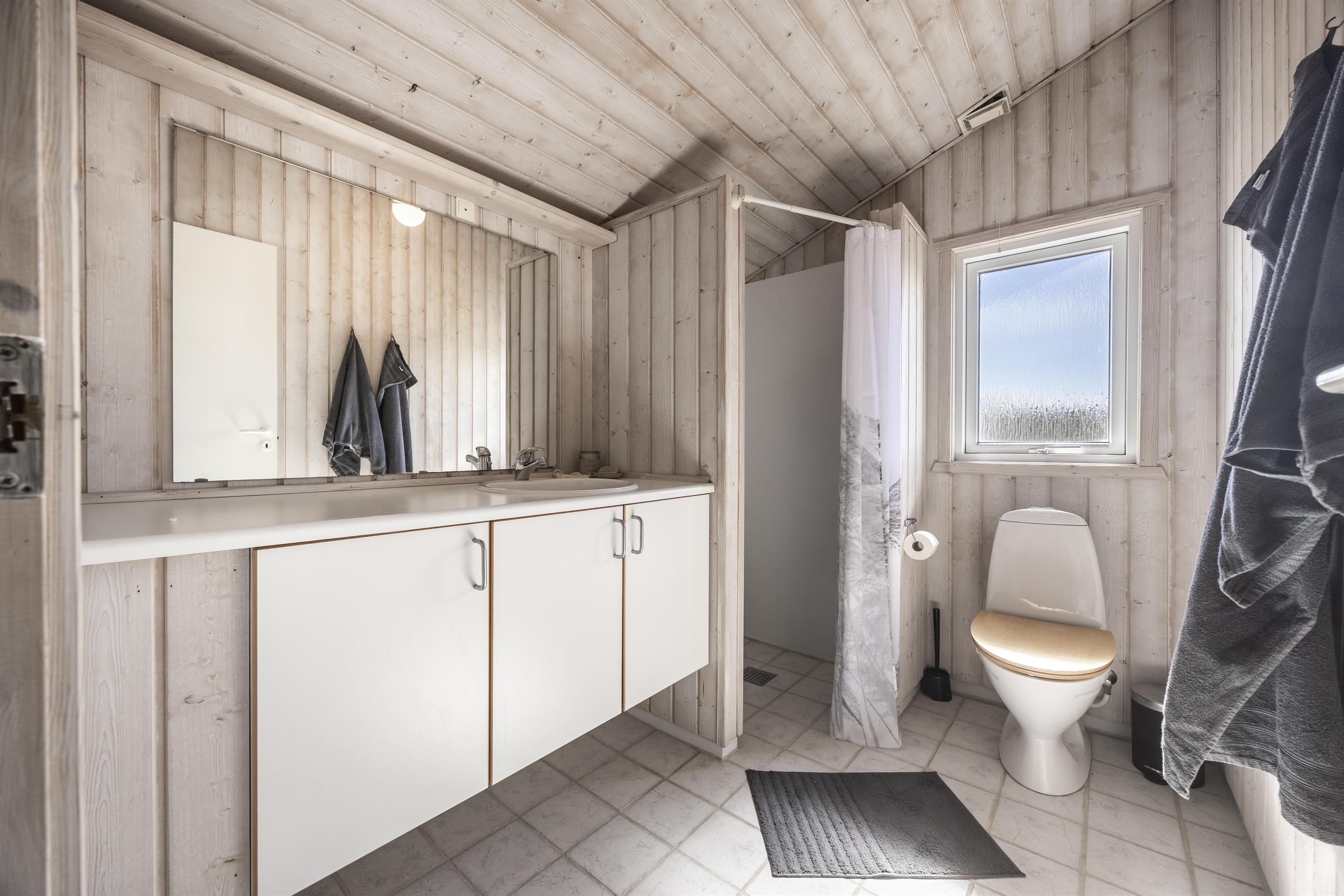 The holiday home features three lovely bedrooms – one of them functioning as a walkthrough room to the twin bedroom. In addition, there is a spacious bathroom and a guest toilet, both with underfloor heating for extra comfort.