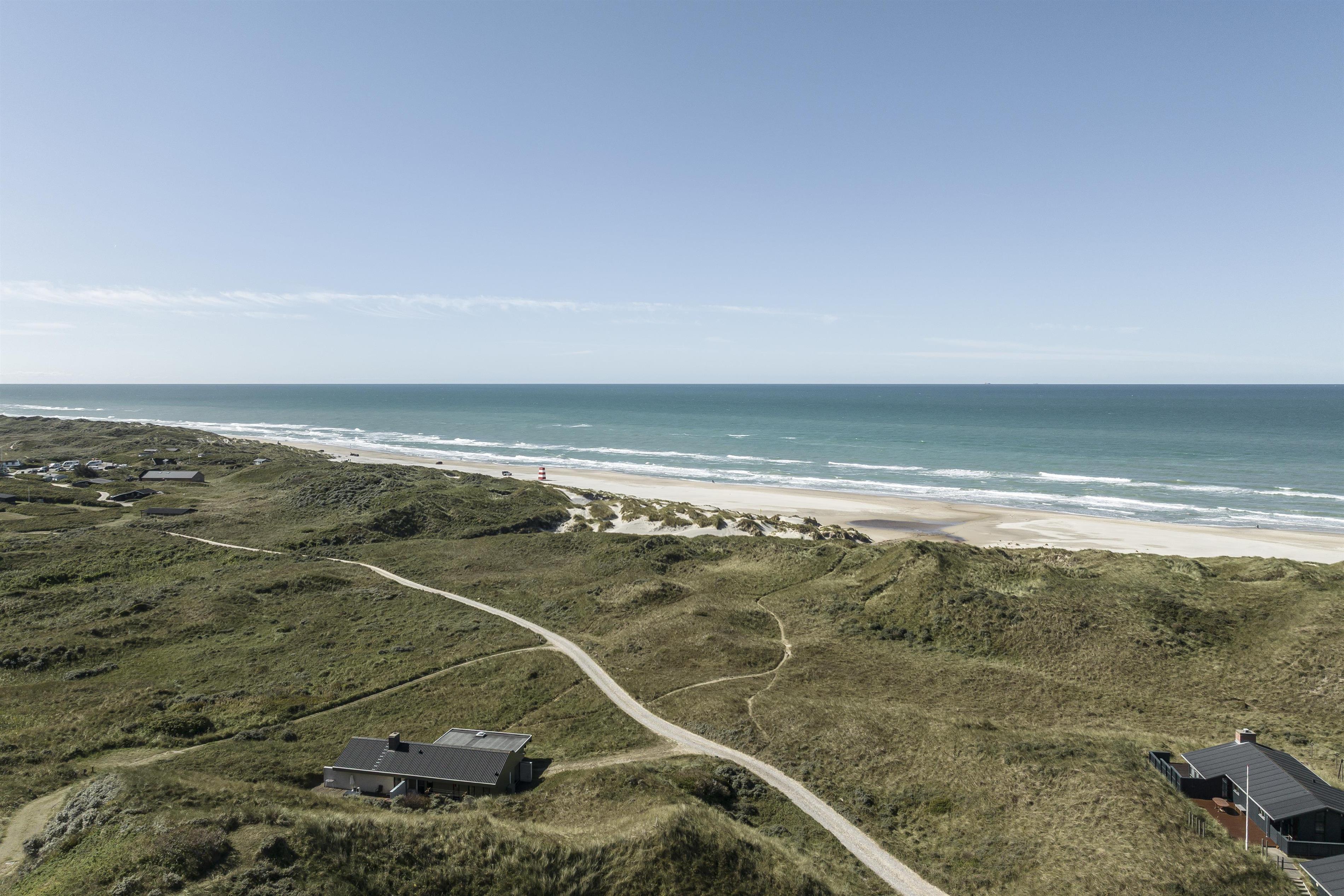 Tornby Beach is one of Denmark’s best and safest beaches. During the summer, lifeguards are stationed in the tower just below the house, so both children and adults can swim in safe surroundings. On a rainy day, you can visit the North Sea Oceanarium in Hirtshals and explore the impressive aquarium with fish both large and small.