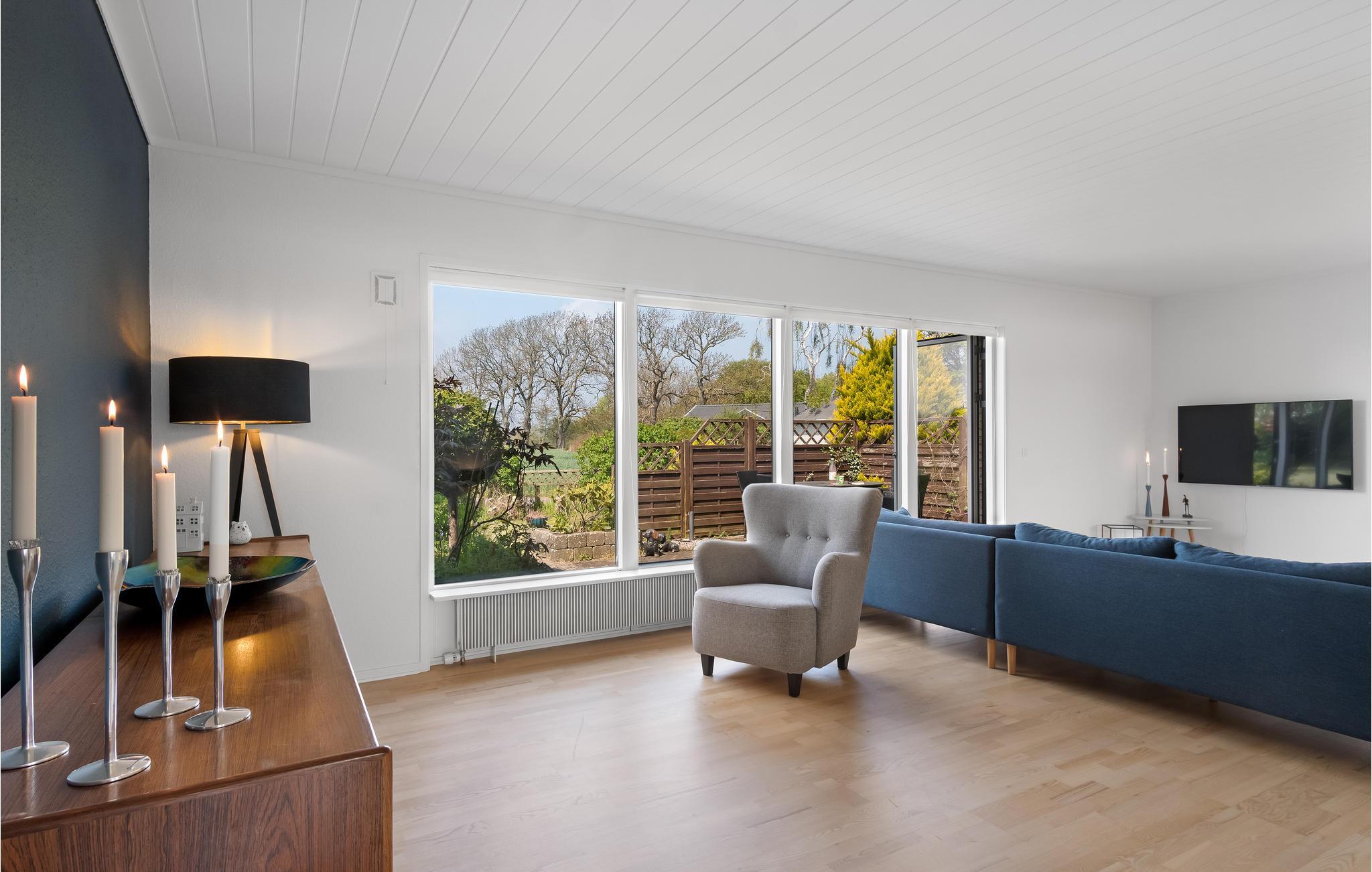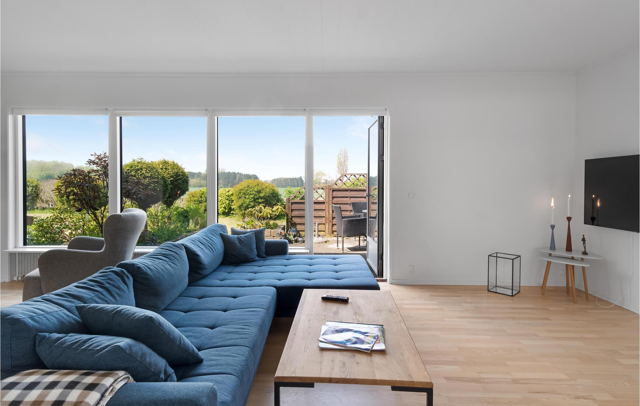 Das schlicht und geschmackvoll möblierte Haus empfängt Sie in idyllischer Lage. Der Blick auf die grünen Wiesen und Felder der Umgebung, der den verschiedenen Räumen bestens zur Geltung kommt, sorgt dafür, dass Sie hier gut entspannen können. Machen Sie es sich auf dem großzügigen Wohnzimmer bequem, sehen Sie einen Film an, oder tauschen Sie sich über die Erlebnisse des Tages aus. Auf der Terrasse können Sie gemeinsam essen und mit wunderbarer Aussicht eine schöne Zeit im Freien genießen.