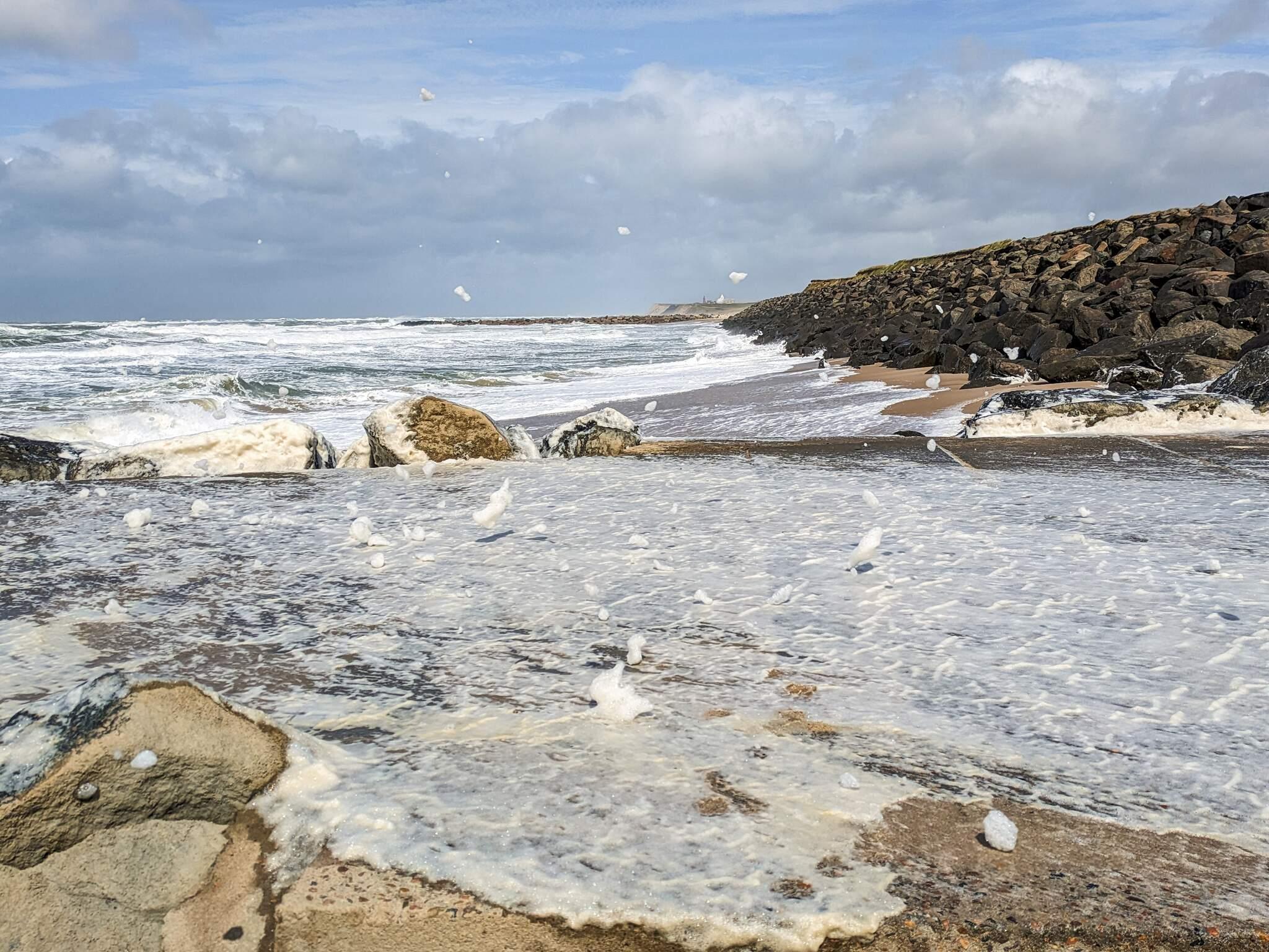 Es gibt draußen sowohl eine offene als auch eine überdachte Terrassenfläche mit Gartenmöbeln und einem Grill, auf dem Sie das Abendessen zubereiten können, während die Sonne im Meer versinkt. Das umliegende Ferienhausgebiet bietet auch ein großes Gemeinschaftsareal mit Spiel- und Bolzplatz.