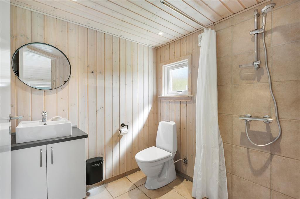 Vom Aufenthaltsraum trittst du direkt hinaus auf die gen Süden ausgerichtete Holzterrasse, die an sonnigen Tagen im Nu zu deinem bevorzugten Aufenthaltsplatz avancieren wird. Gepflasterte Terrassenareale stehen ebenfalls bereit. Falls du nach erholsamen Momenten im Gartenstuhl ein wenig Bewegung brauchst, kannst du mit deinem Lieben wunderbar Krocket und Wikingerschach auf der Rasenfläche spielen. Das 1.552 m² große Grundstück bietet viel Platz und liegt etwas zurückgezogen in einem kleinen Seitenweg des Kronvildtvejs. Nur 100 Meter trennen dich und deine Familie vom fantastischen Gemeinschaftsareal des Ferienhausgebiets, das euch beste Aktivitätsmöglichkeiten bietet.