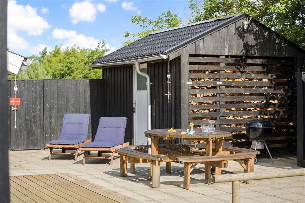 Dank mehrerer Terrassen werden Sie zu jeder Zeit einen für Sie perfekten Aufenthaltsplatz mit Sonne oder Schatten finden. Ein Großteil des Aufenthaltsbereichs unter freiem Himmel ist offen. Nur an die Westseite des Hauses schmiegt sich ein überdachter Bereich, der sich wunderbar für die hellen, langen Sommerabende anbietet. Nach Einbruch der Dunkelheit können Sie sich rund um die Lagerfeuerstelle versammeln. Wer Lust hat, kann sogar mit zwei bis drei Personen in der Schutzhütte im Freien übernachten - ein tolles Erlebnis mit Kindern!