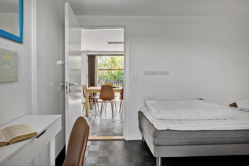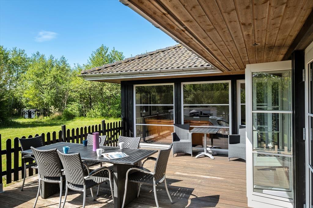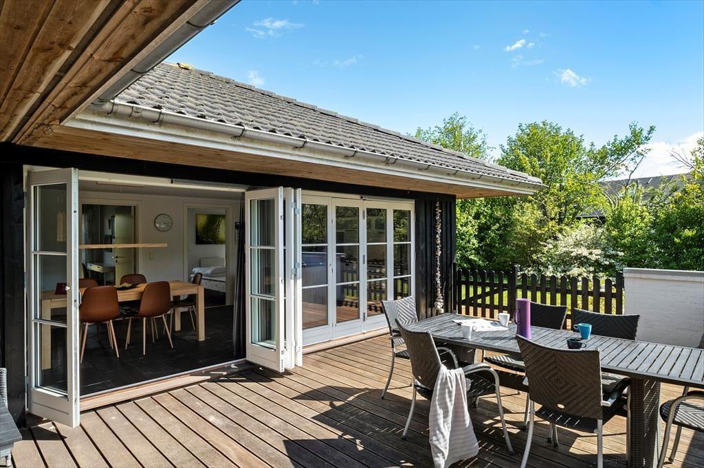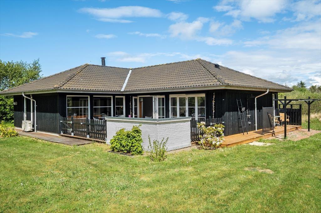 Die großen Fensterfronten sorgen nicht nur für einen schönen Lichteinfall und eine schöne Aussicht, sondern bieten auch den Zugang zu den zwei größeren Terrassen. Hier gibt es genug Platz für alle. Und wenn Sie sonnenbaden möchten, können Sie ungestört hinter der Schutzmauer liegen. Um das Haus herum gibt es eine Rasenfläche, die zum Spielen einlädt. Wollen Sie noch mehr Platz zum Spielen, müssen Sie nur zum Ende der Straße laufen, dort befindet sich ein großer Spiel- und Aktivitätsbereich. Dort gibt es einen Spielplatz und vieles mehr, dass Kindern jedes Alters Freude bereitet. Mehr dazu finden Sie auch auf der eigenen Webseite: www.tranumferieby.dk .