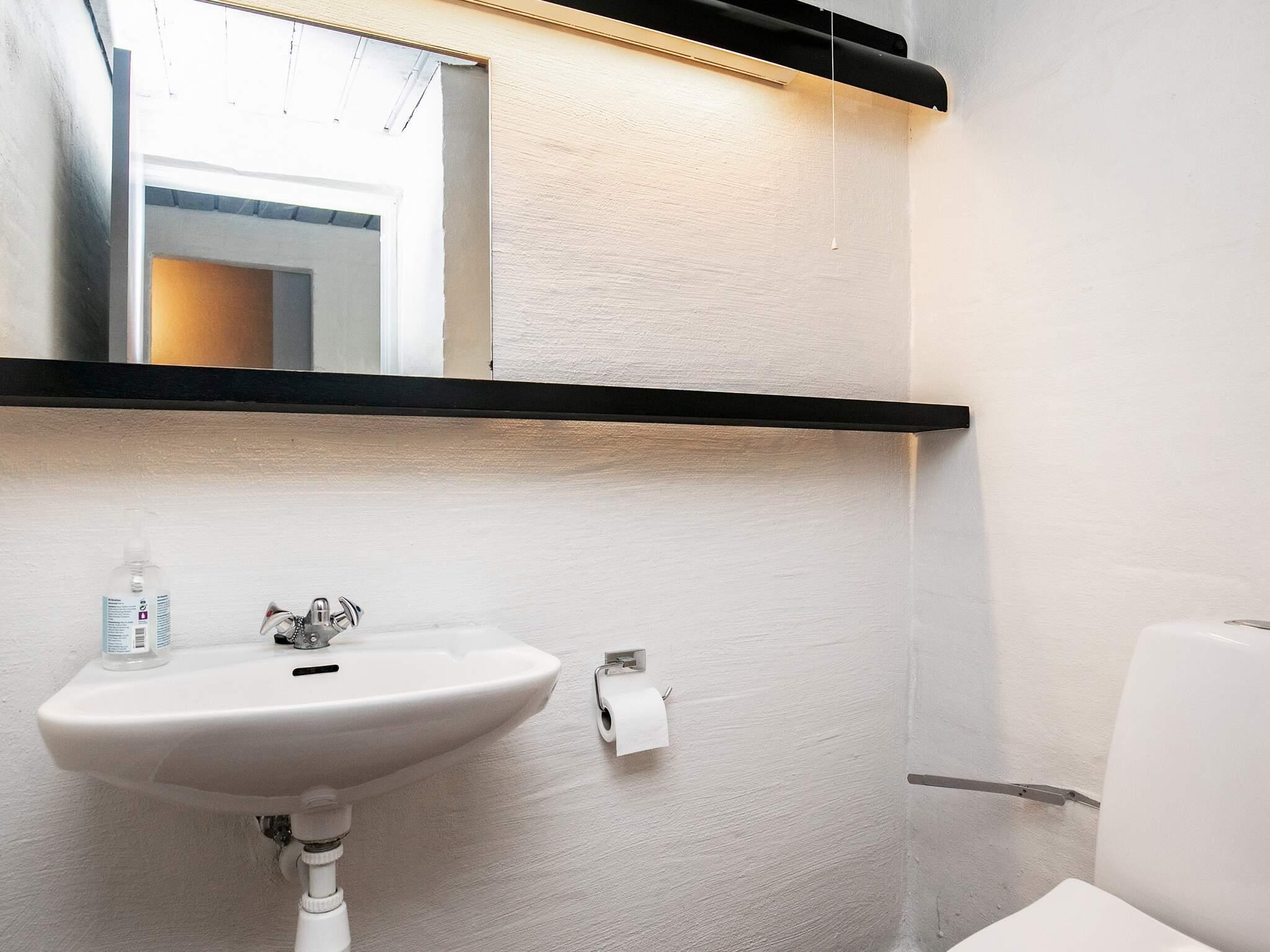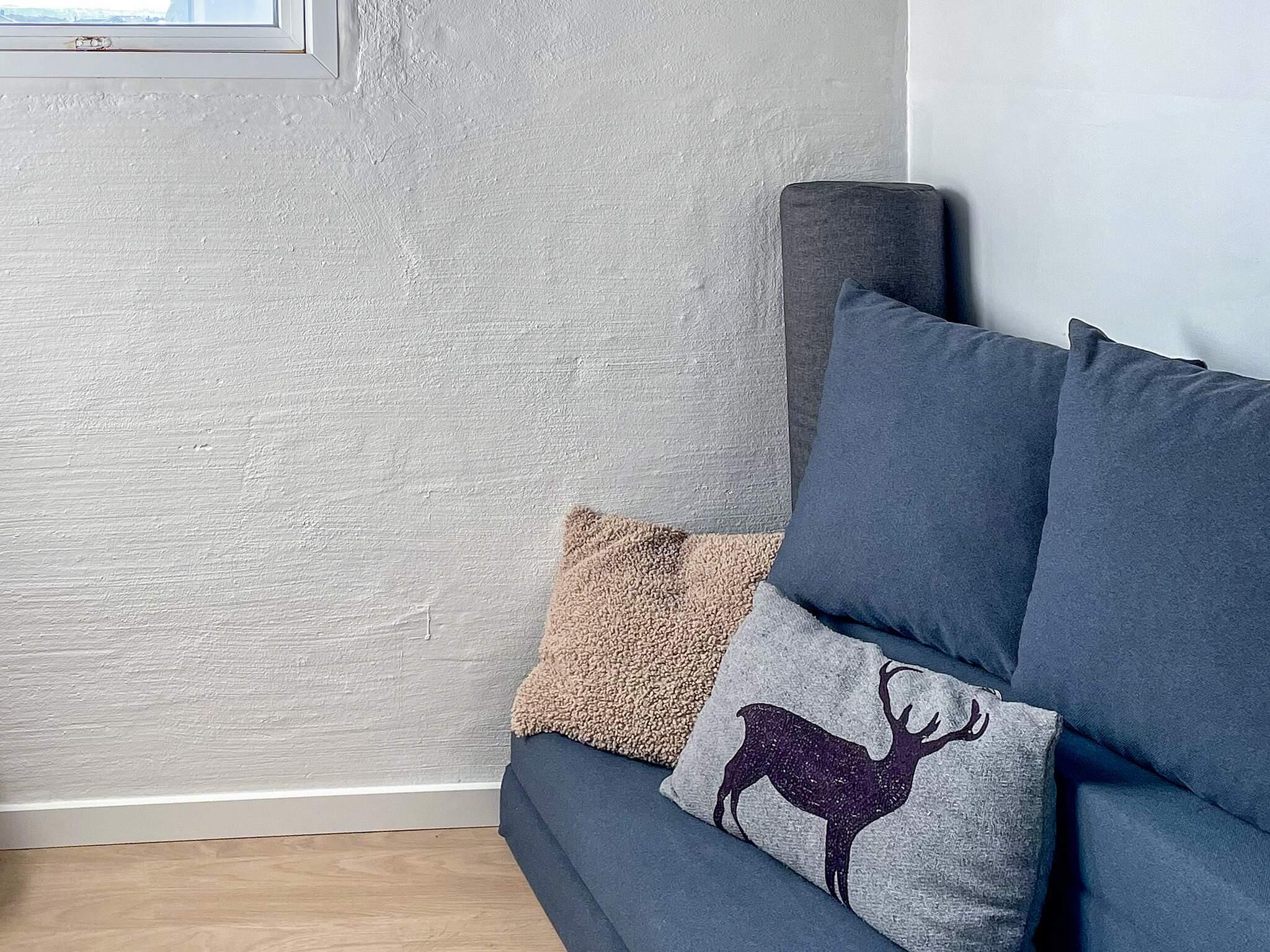 Das Haus erstreckt sich über 1 1/2 Etagen. Im Erdgeschoss befinden sich Eingangsbereich, Wohnküche, Badezimmer und Schlafzimmer mit einem hochwertigen Doppelbett.
