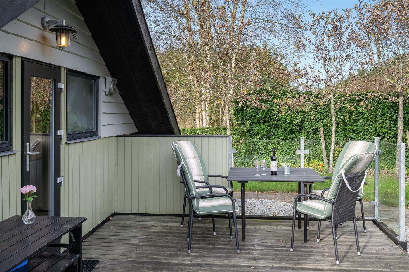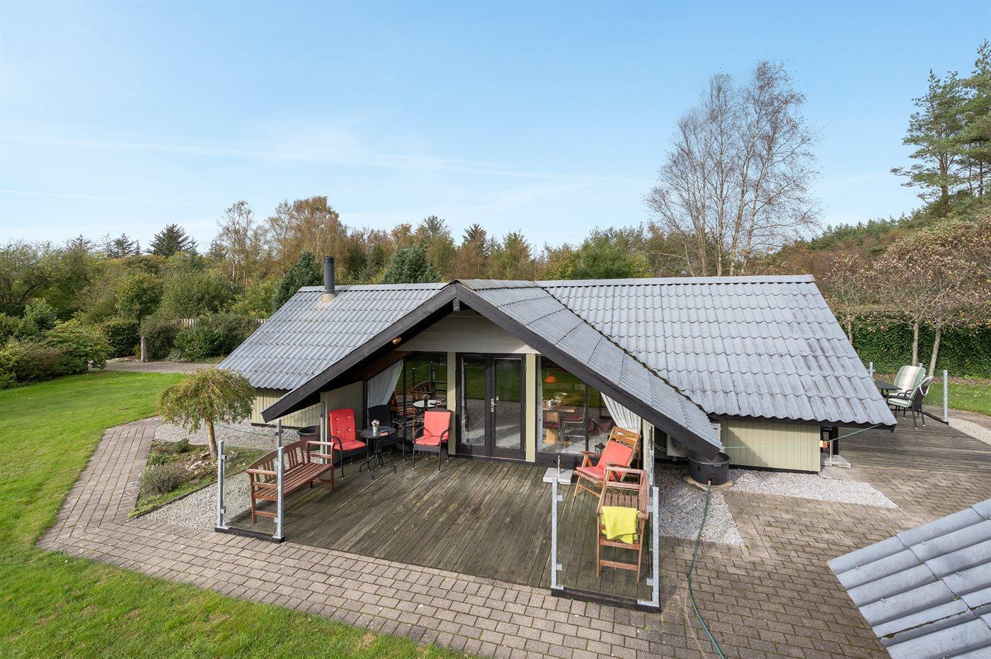 The holiday home is situated on a 1375 m² garden site. Situated 4400 m from the sea. Nearest shop is 2000 m away. A 40 m² terrace belong to the holiday home. Furthermore the house has a 6 m² covered terrace. You find a tool shed. Trampoline. Parking place by the holiday home.