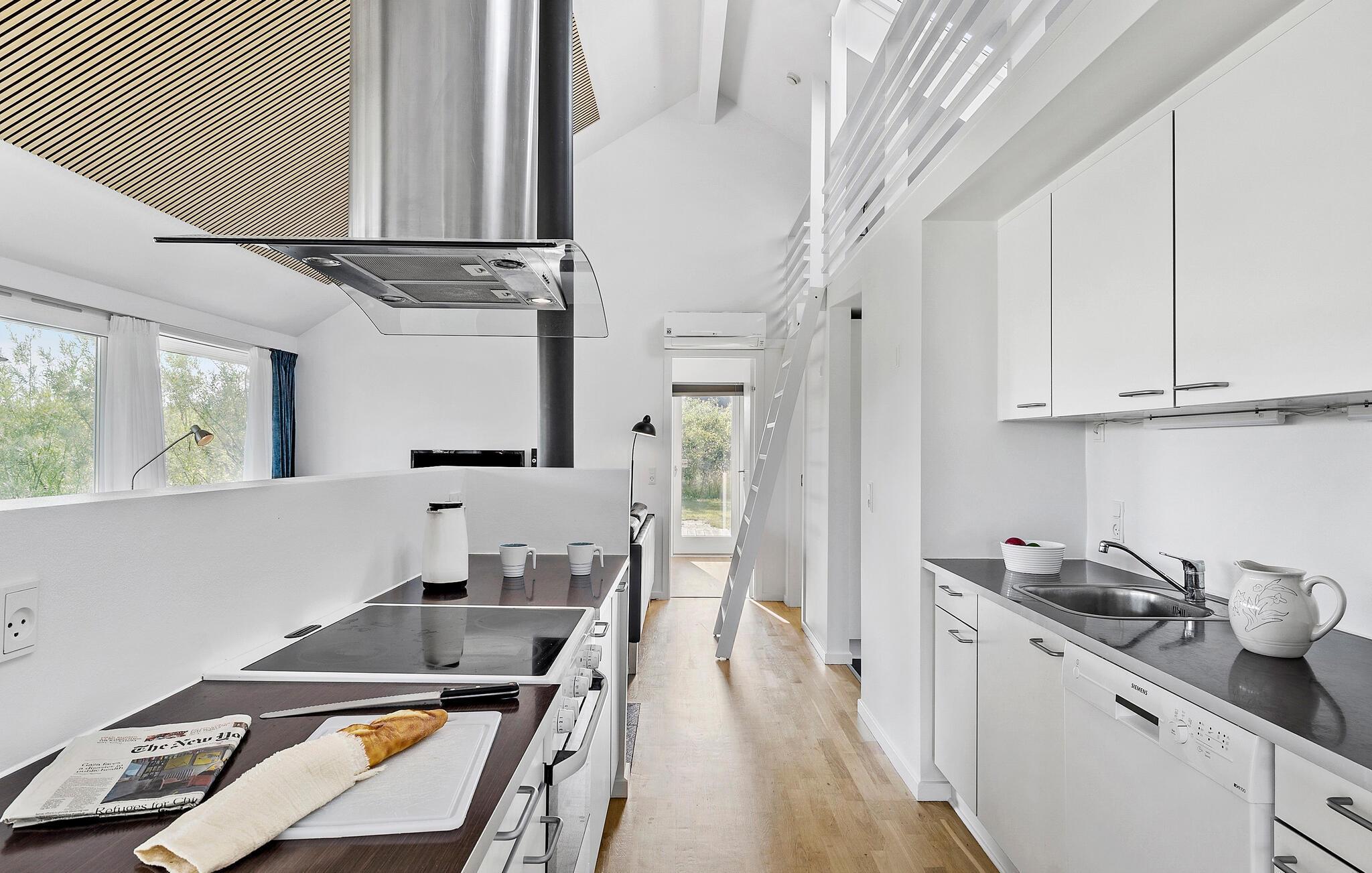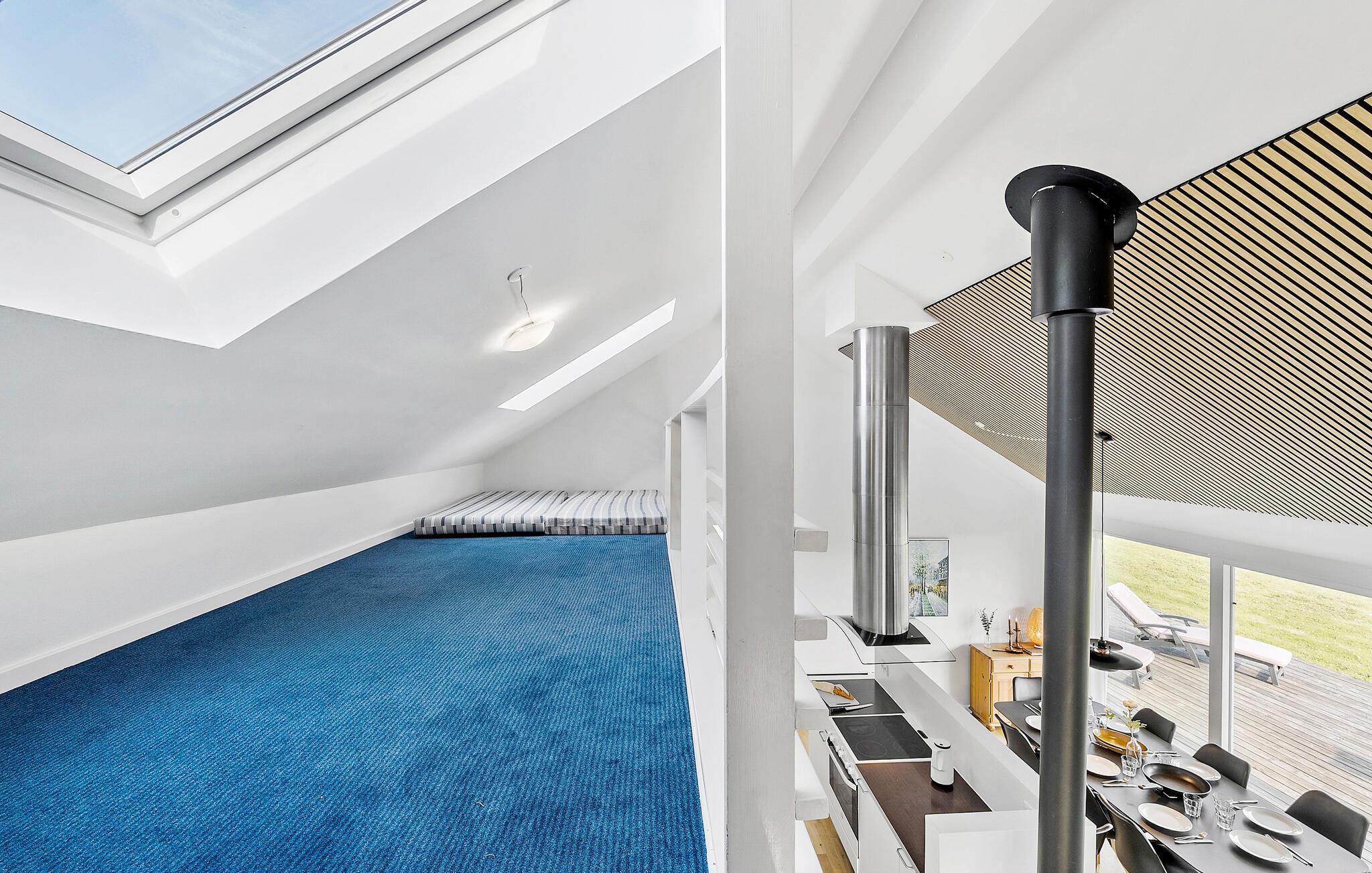 Hier im Norden Jütlands sind Sie genau richtig, wenn Sie abschalten und zur Ruhe kommen möchten. Dieses attraktive Ferienhaus liegt auf einem offenen Naturgrundstück in einem großzügigen Ferienhausgebiet, nicht weit von Fosdalen und dem Strand von Tranum entfernt. Das Haus besticht durch seine spannende Architektur und die hochwertige Ausstattung. Wohn- und Küchenbereich sind kombiniert, und große Fensterfronten lassen viel Tageslicht in den Raum. Eines der drei Schlafzimmer bietet direkten Zugang zu einem luxuriösen Badezimmer mit Whirlpool und Sauna. Zusätzlich verfügt das Haus über einen großen Schlafboden.