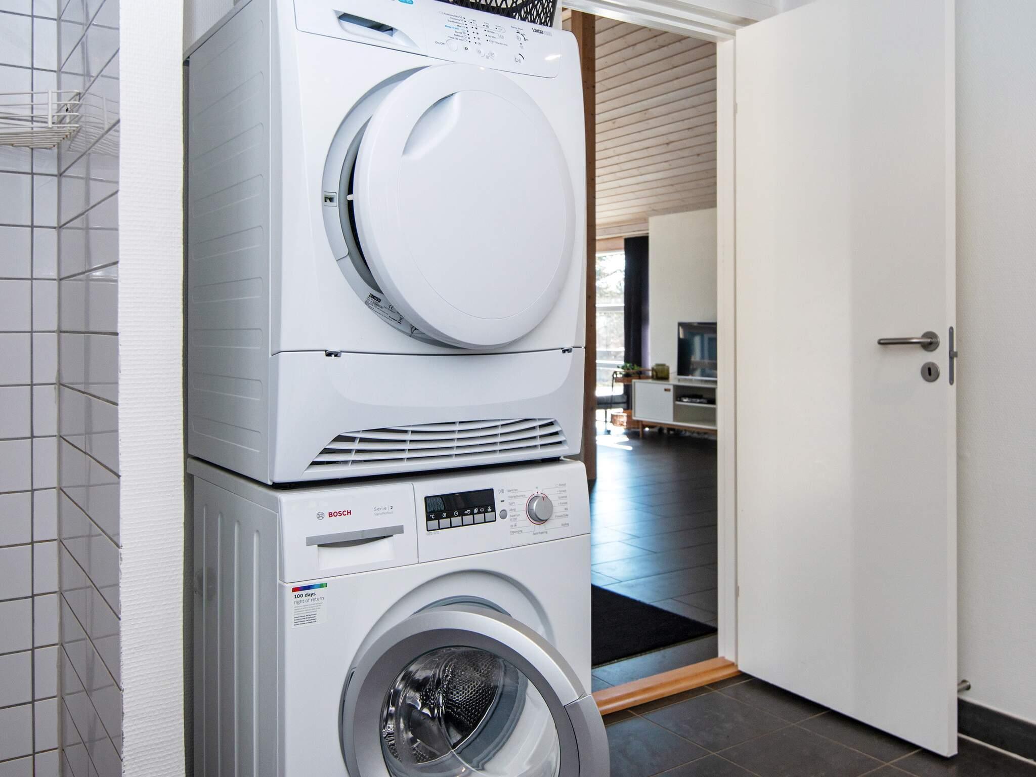 Es gibt zwei Bäder im Haus, beide mit Toilette, Waschbecken, Dusche und Fußbodenheizung. Zur weiteren Ausstattung gehören eine Waschmaschine und ein Wäschetrockner sowie in der Küche u.a. Ceranfeldherd, Mikrowelle und Geschirrspüler.